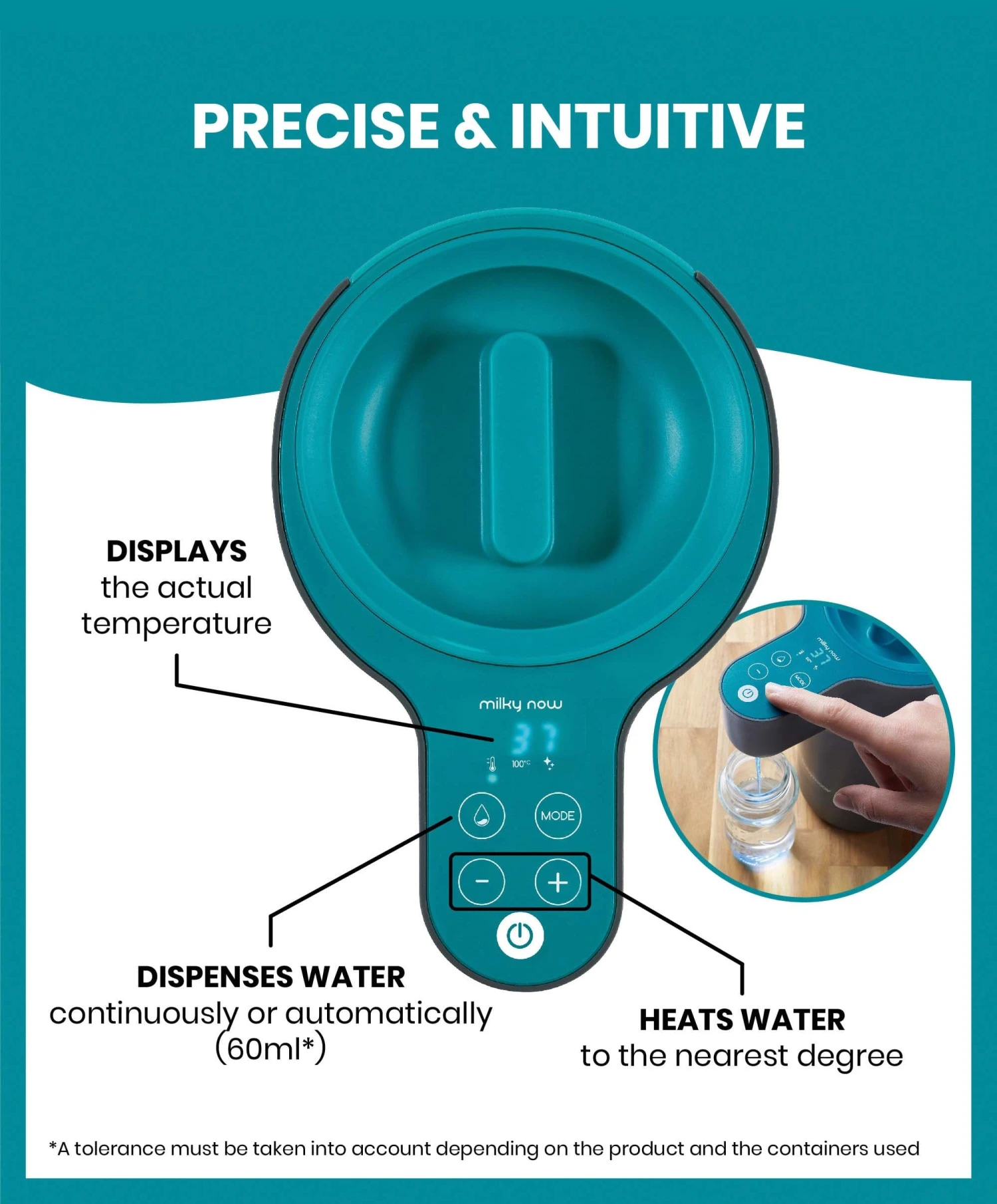 - Practical: heats the water for baby bottles or other hot drinks to the exact temperature required, and keeps it at the right temperature for up to 6 hours (between 22°C and 85°C). No need to measure the amount you pour out: Milky Now will automatically distribute 60ml at the press of a button*.