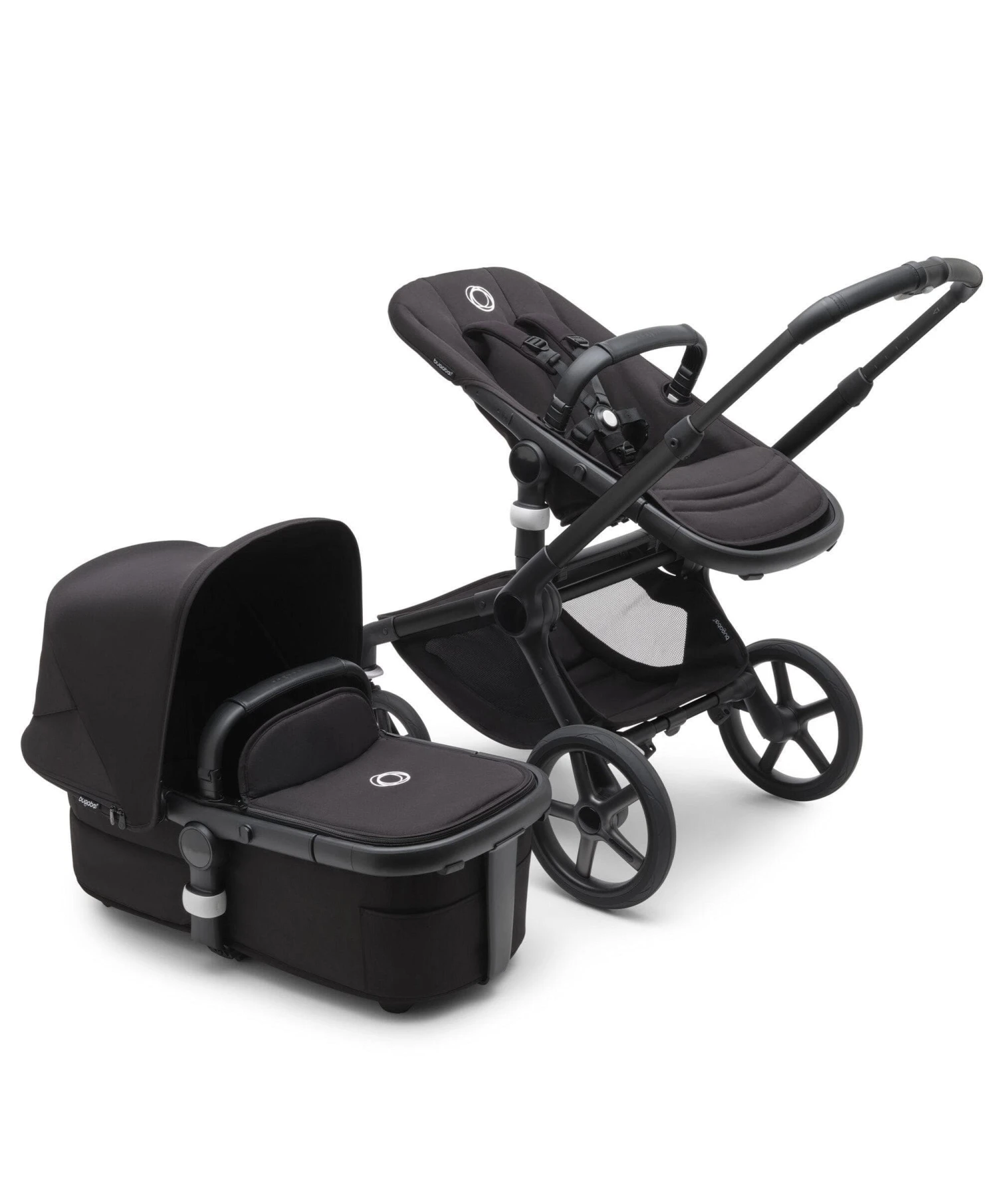 What’s included? This item contains the complete Bugaboo Fox 5 including a chassis, wheels, seat/bassinet frame, seat hardware, footrest, comfort harness, rotating carry handle, canopy wires, canopy clamps, bassinet stiffeners, bassinet bottom, bassinet fabric set, mattress, seat fabric, grips, wheel caps, sun canopy fabric, underseat basket and rain cover.