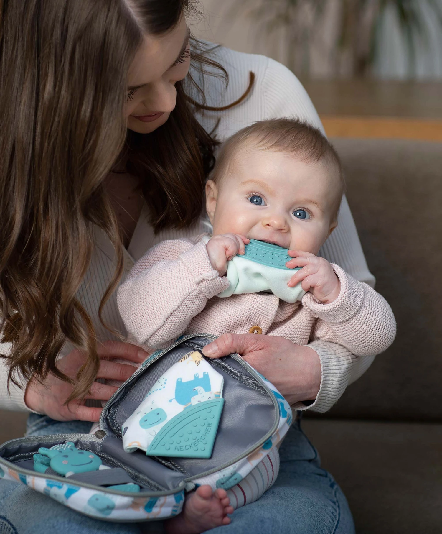 This compact stylish kit of teething essentials is ideal to help entertain, distract and soothe babies while on-the-go! Just pop it in your changing bag so help is at hand.