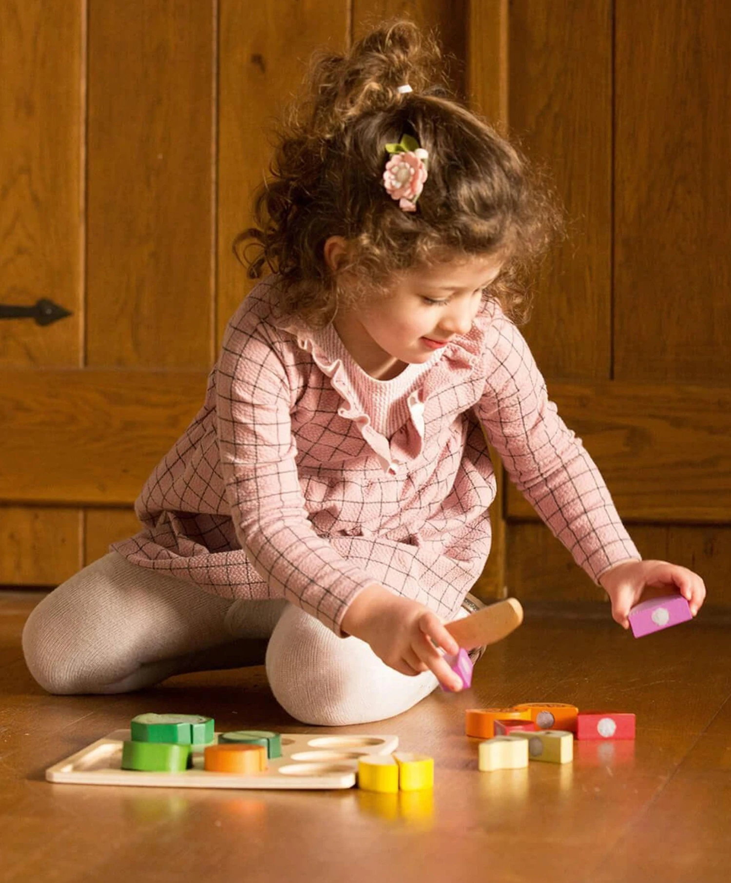 The fruits can be cut on one side of the cutting board and then be matched to their complete images on the other side. This is the best healthy choice for training your toddler’s hand-eye coordination, fine motor skills, visual perception skills and beginning vocabulary whilst also having fun with the wooden fruit cutting toy from Classic World Toys.
