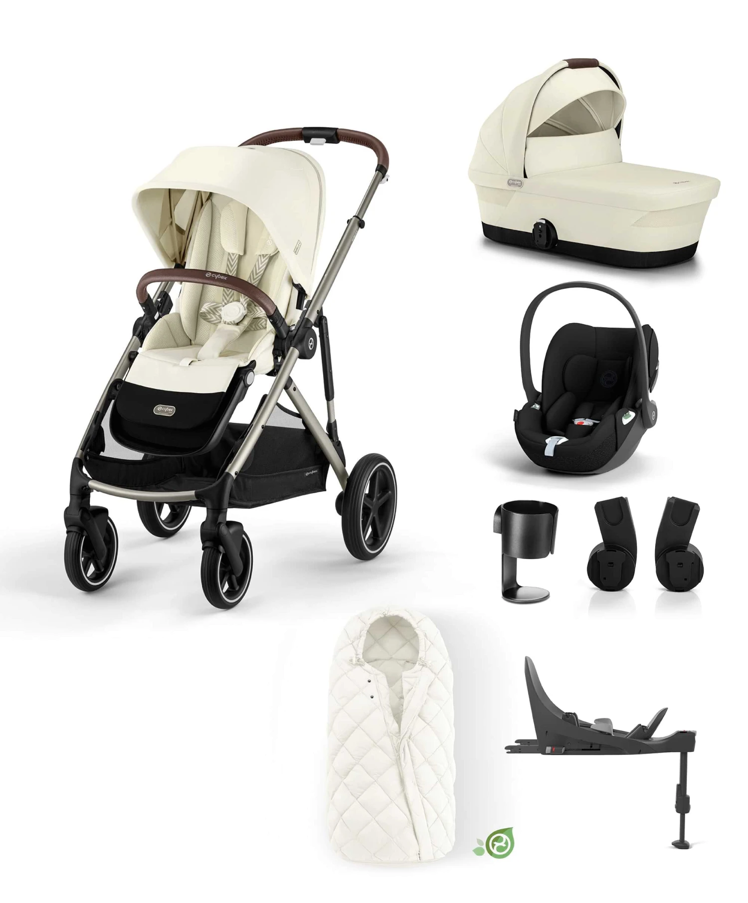 This Bundle includes: Cybex Gazelle S Pushchair, Cybex Gazelle S Carrycot, Cybex Snogga Footmuff, Cloud T i-Size Baby Car Seat in Sepia Black, Cupholder & Adaptors