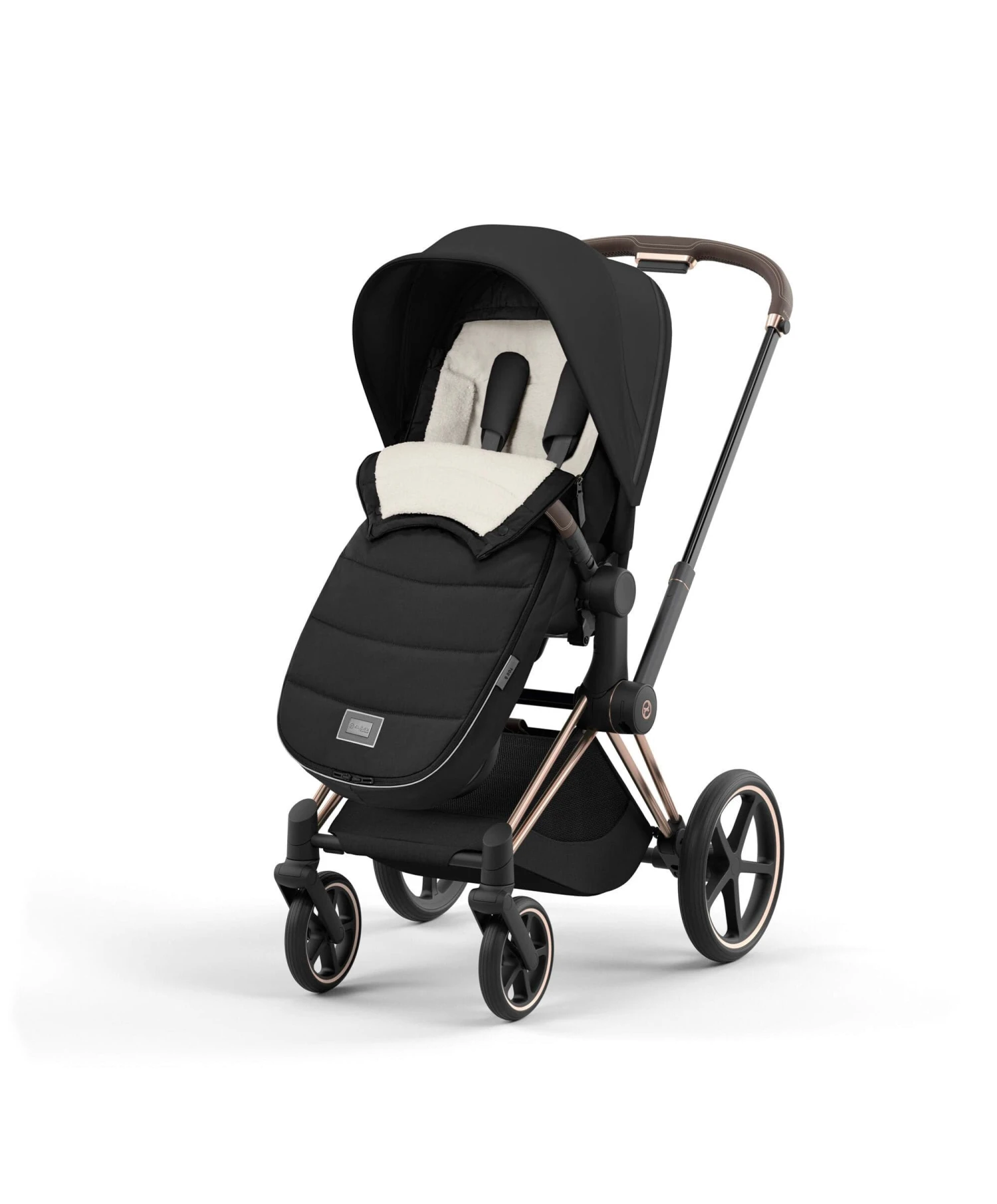 Keep your little one warm and cosy when the temperature drops – with the elegant Platinum Footmuff. The ideal match to your Priam, e-Priam and Mios pushchair that protects from cold weather, wind and light rain.