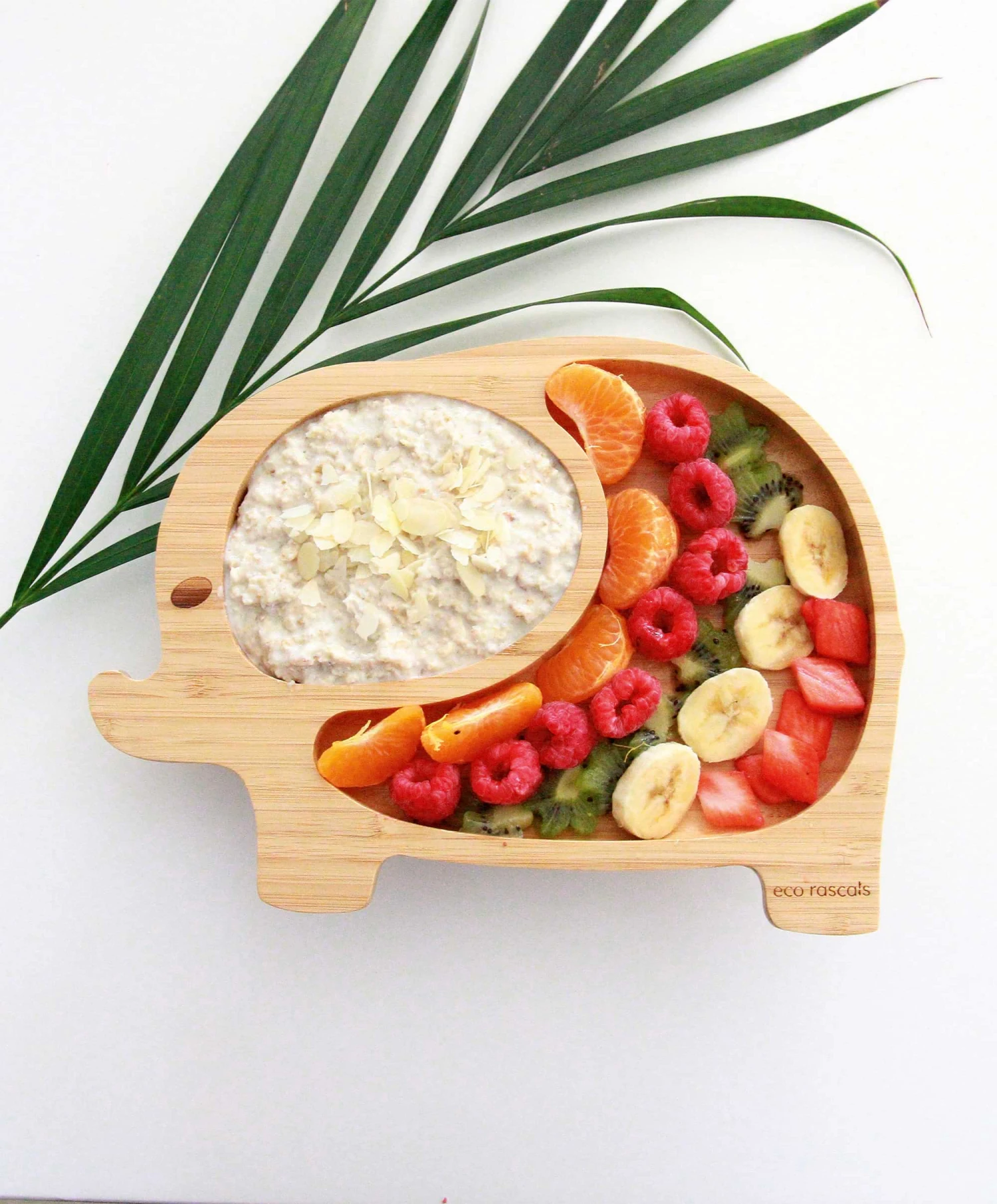 Want a safe suction plate that will support your child’s growing appetite? eco rascals’ bamboo elephant plate with silicone suction base in grey has two large sections to allow the separation of hot and cold or sweet and savoury food.
