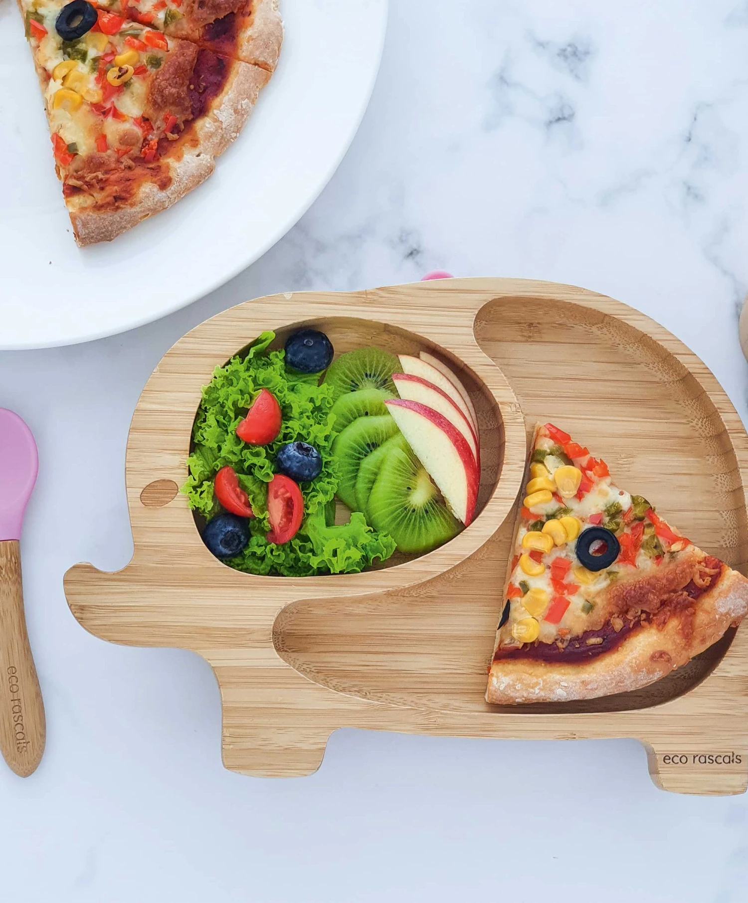 Want a safe suction plate that will support your child’s growing appetite? eco rascals’ bamboo elephant plate with silicone suction base in pink has two large sections to allow the separation of hot and cold or sweet and savoury food.