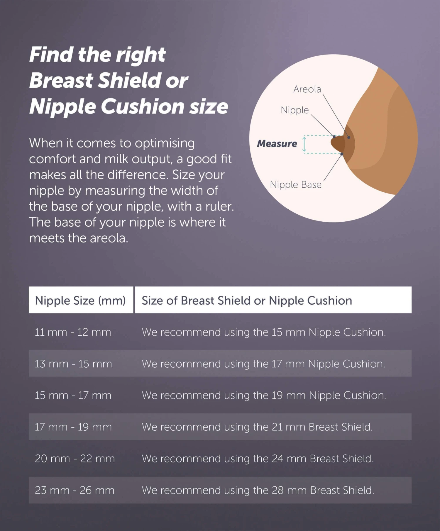 - For your ideal fit – More size options for more women, because fit comes first. Compatible with all our 24 mm Breast Shields, Elvie Cushions are available in three sizes, 15 mm, 17 mm, and 19 mm, so you can tailor your pump to your body.