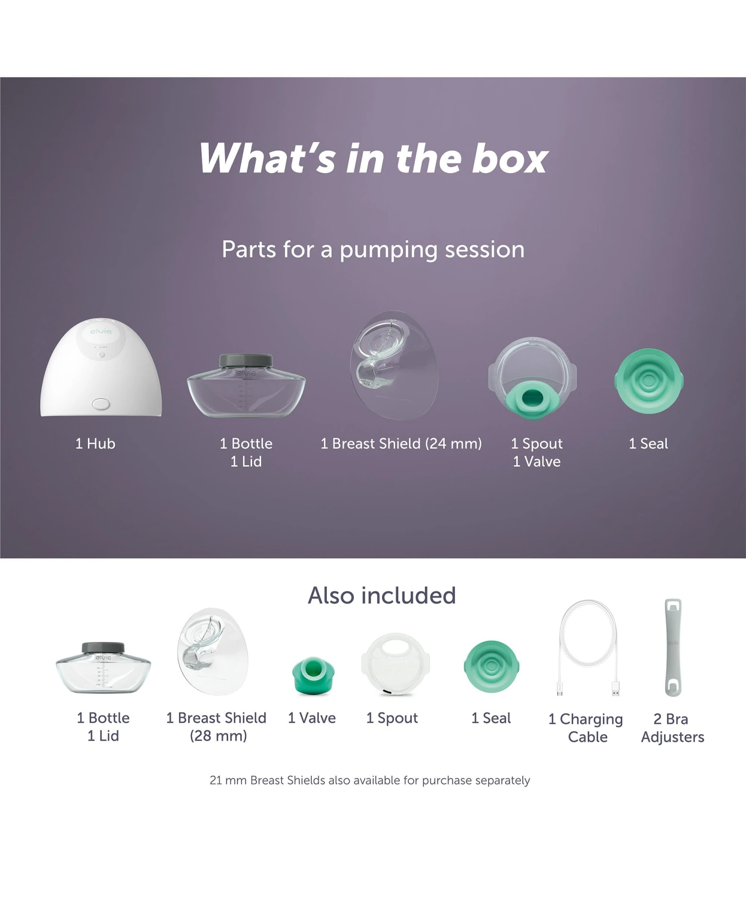 - Includes Breast Shields in two sizes in the box for the best fit. A third size can be purchased separately.