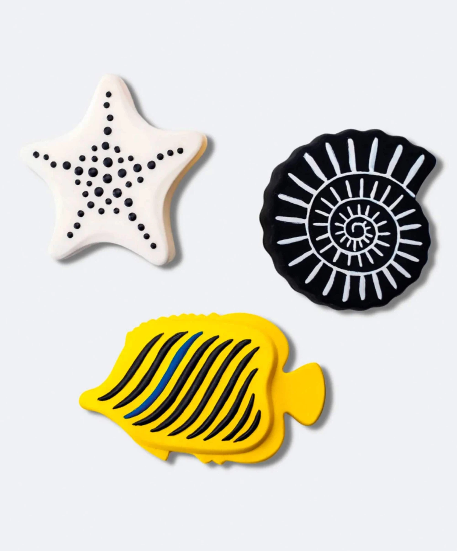 Dimensions: Starfish: 10x10cm/Fish 13x8cm/Ammonite 10x9cm