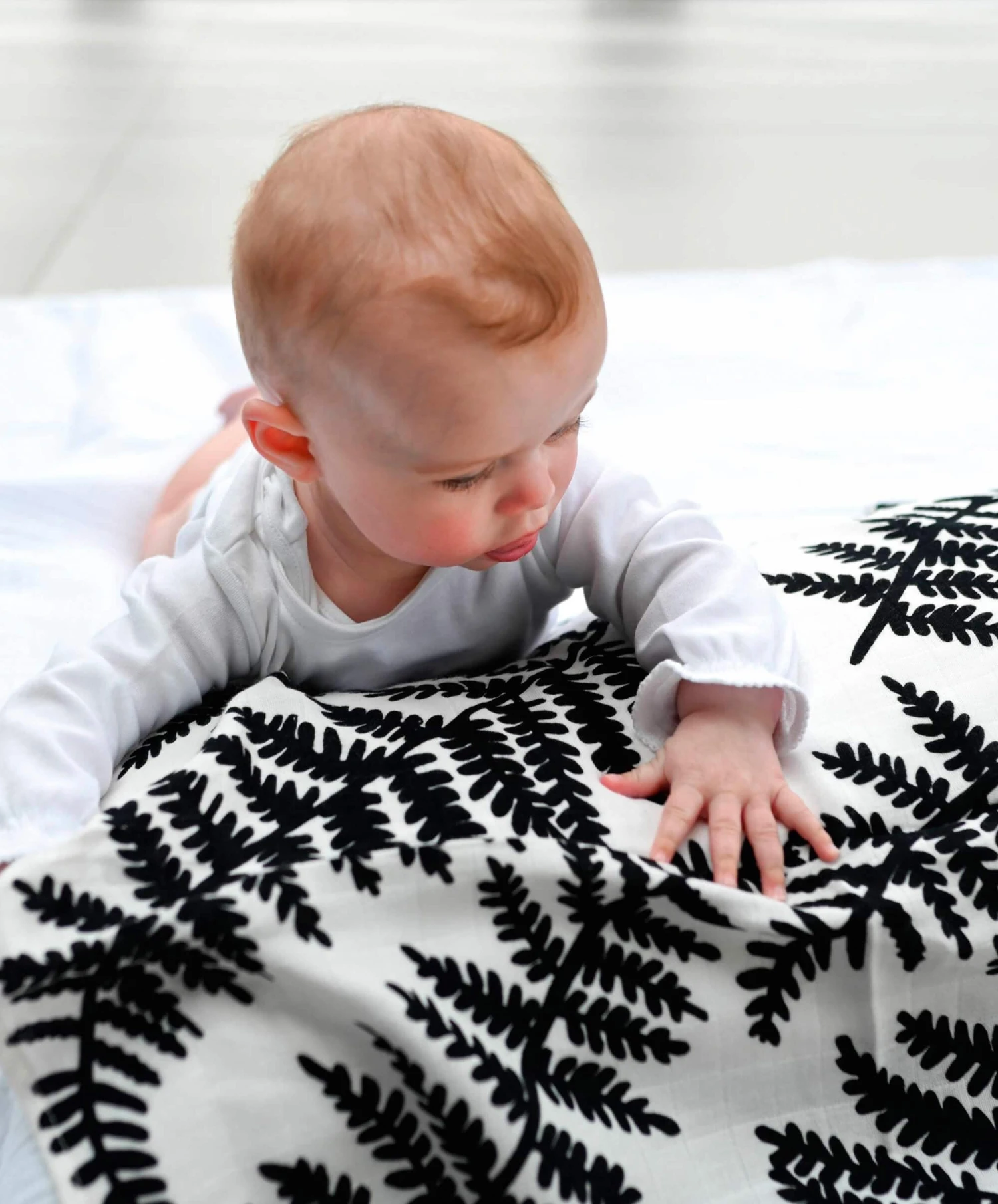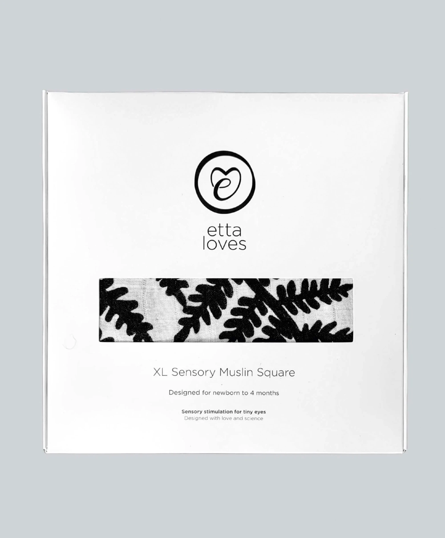XL supersoft sensory muslin square in high contrast black and white. Designed to the millimetre to support babies’ cognitive and visual development between birth and around four months. Perfect for cuddles, spillages, for using as a lightweight blanket, breastfeeding cover or to put over a playmat to encourage tummy time. You can even wind them up in a car window for shade and stimulation for calmer car journeys.