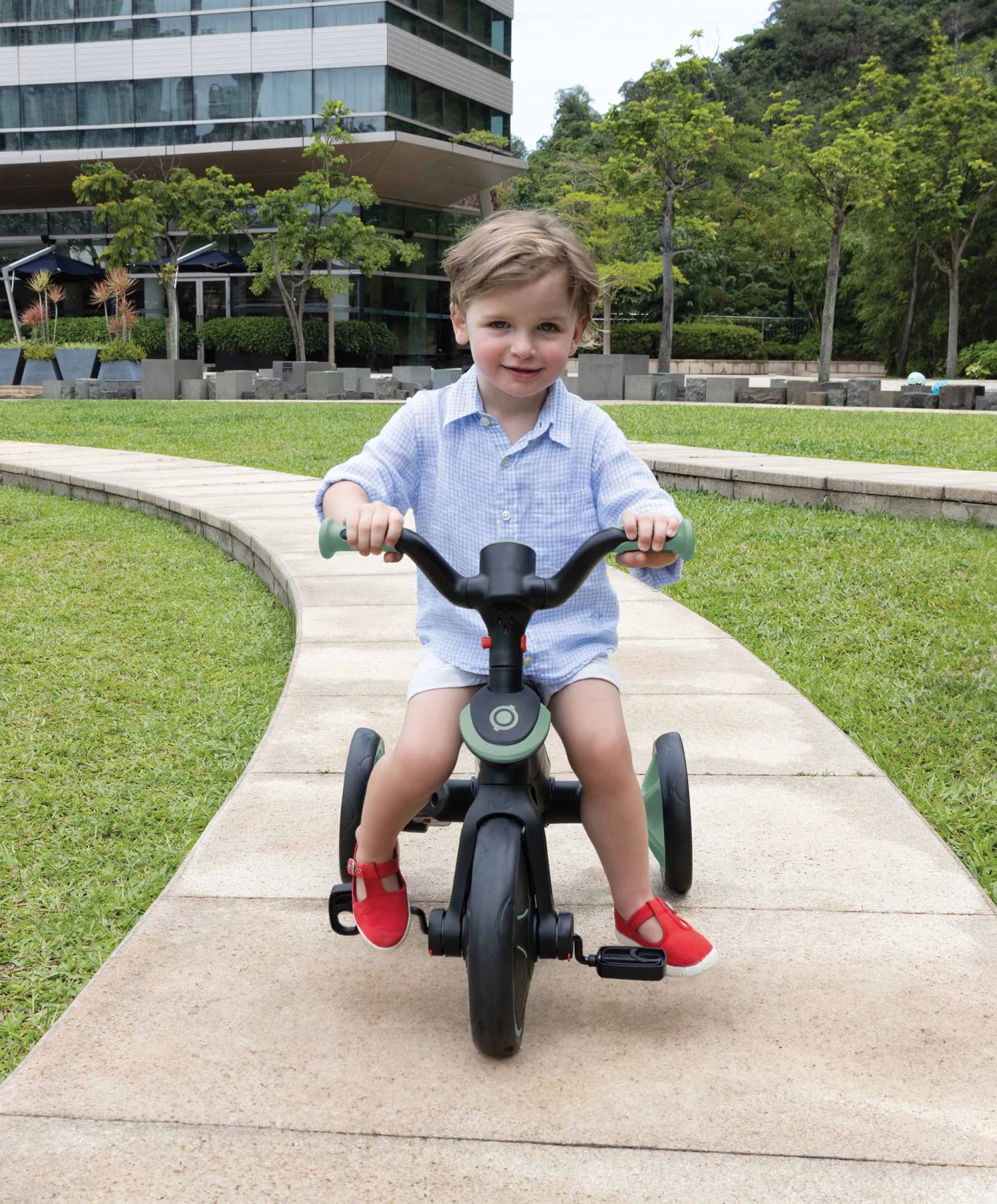Foldable with a handy carry bag for even more convenience, the Globber EXPLORER TRIKE FOLDABLE 4in1 is the perfect all-in-one companion to your family’s outdoor adventures! Suitable for little ones 10 months to five years+, to see them develop through their toddler years and beyond. Easy to transport with the patented scissor folding system and smart handlebars, the tricycle can be folded into trolley mode in an instant, meaning taking the trike on the go and putting it away after playtime has never been so simple! The trike can be easily converted between its four forms, as the child grows, thanks to the 100% tool-less design. When assembled as a toddler tricycle, it can be adapted for when kids develop. From infant trike when they are 10 to 36 months, to guided trike for 18 to 36 months, to training trike for 24 to 36 months – and for when they are ready, a balance bike for 2 to 5 years. With a patented wheel mechanism, adults can easily transform the trike through the modes to meet their little one’s stage in development. Without the need for tools, the process is both quick and simple! With a built-in front wheel system locking system for optimum safety. Infant trike: Pushchair with parent handle to keep little ones safe and comfortable. Guided trike: A great tricycle to help toddlers learn to steer with the parent handle. Training trike: Encourage little ones to learn to steer and balance by removing the trike’s parent handle. Balance bike: Toddlers can show off their trike skills as they balance independently. The Trike has been designed to include a 5-point safety harness with comfortable shoulder pads, high-back seat, kid’s wide, removable footrest and safety bar when in infant trike mode. For those sunnier days, the detachable, adjustable anti-UV (UPF 50+) canopy will add style and protection. Quench kids’ thirst on the go and store their water bottle in the integrated bottle holder on the parent handle for easy access to hydration when travelling.