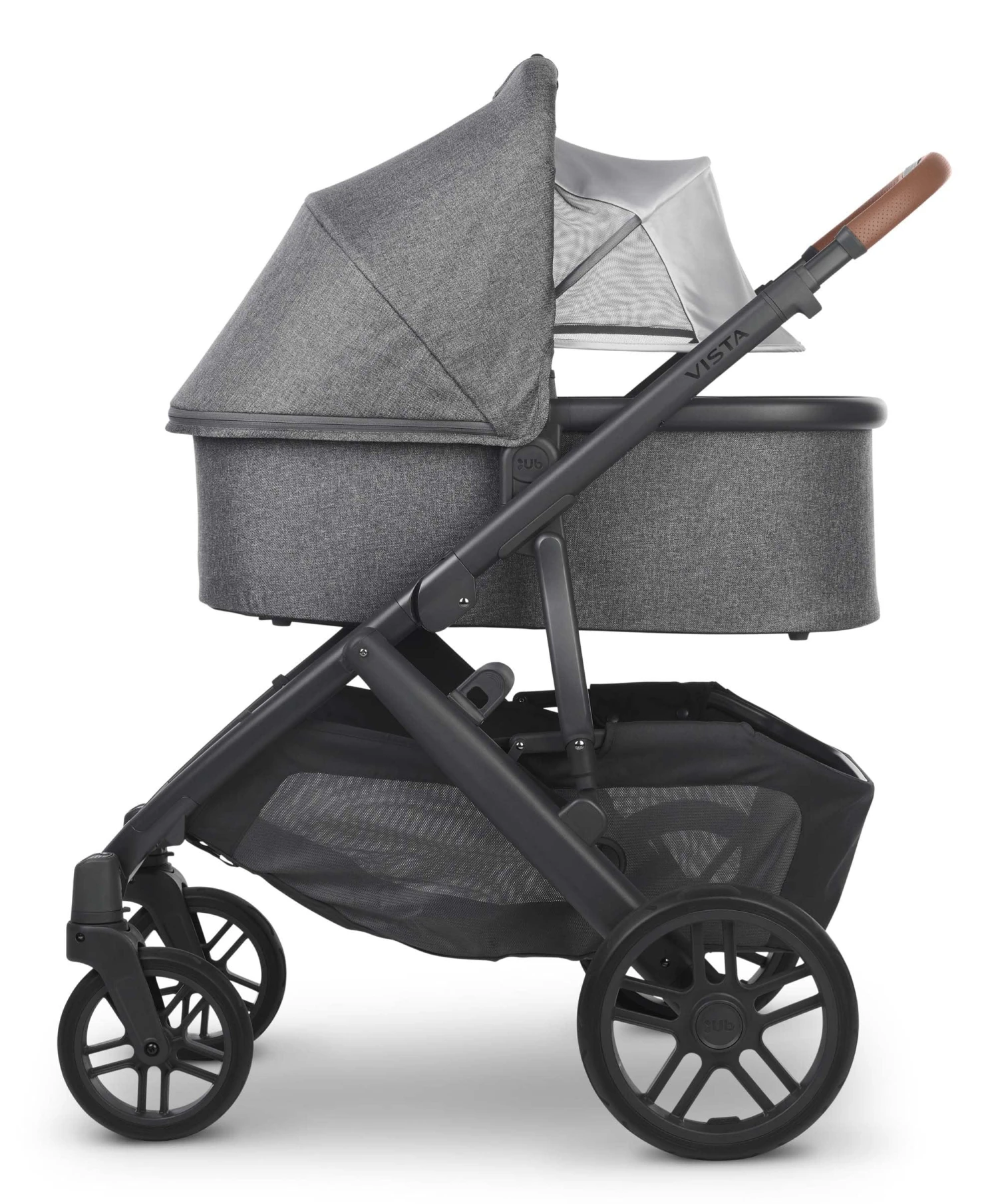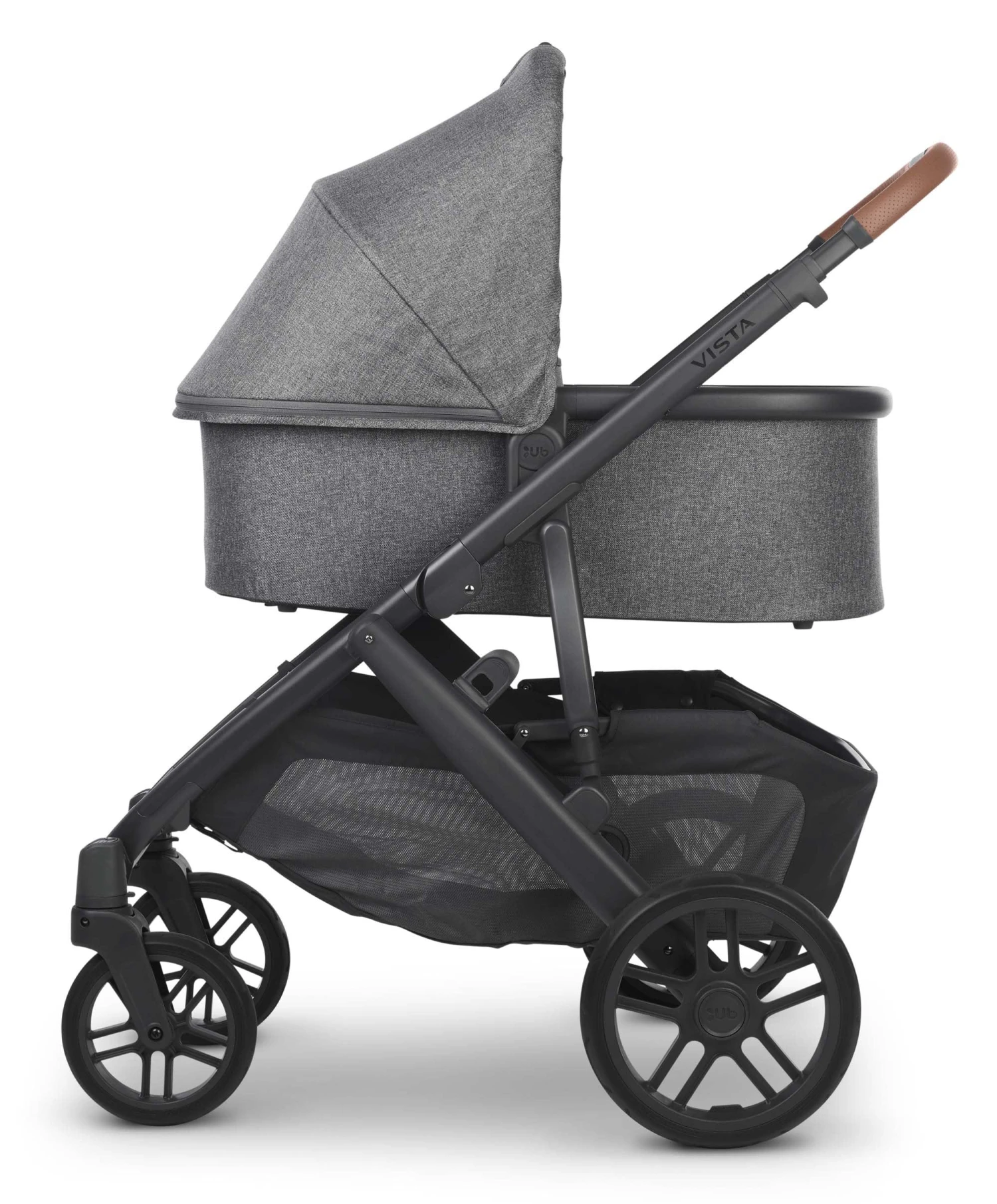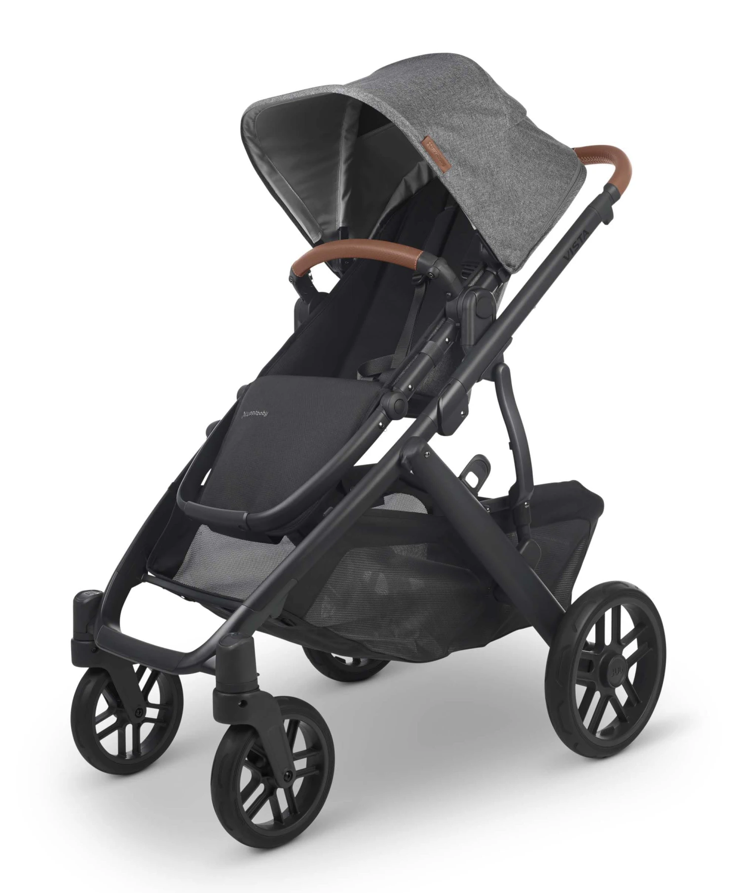 The Uppababy VISTA V2 pushchair with its enhanced performance features and intuitive design allows for multiple configurations, making transporting a second and third child a breeze – all while strolling like a single.