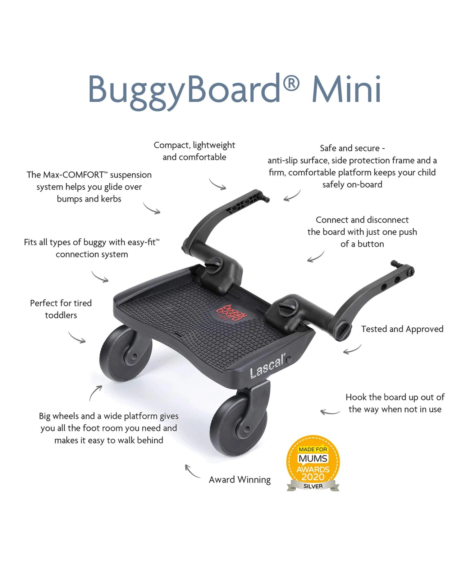 - Universal fit – Buggy Board Mini offers universal fit with more than 99% of pushchairs, prams and strollers.
