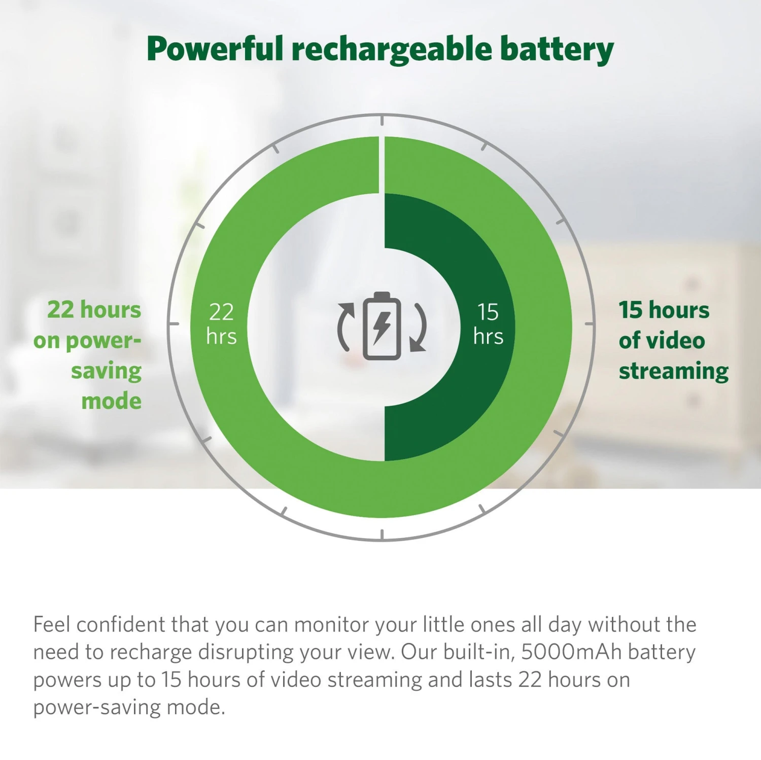 Magnify details up to eight times their original size with the crisp digital zoom range and monitor room temperature and humidity levels directly from the Parent Unit Display.