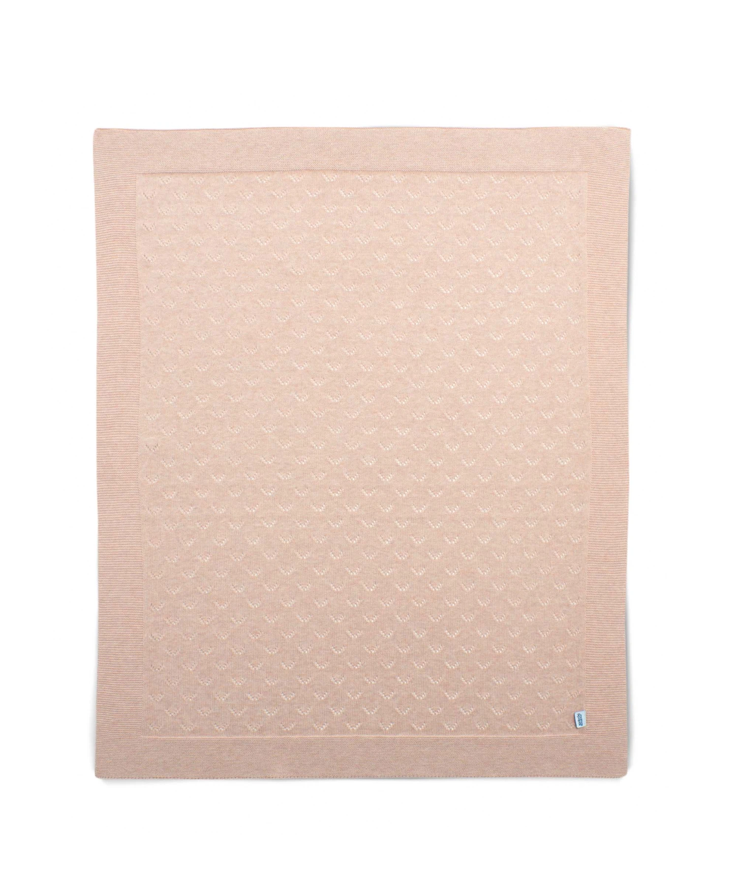 With its delicate pointelle pattern, classic knitted texture and warm dusky pink shade this soft blanket adds rich texture to baby’s nursery while making naps and snuggles extra cosy.