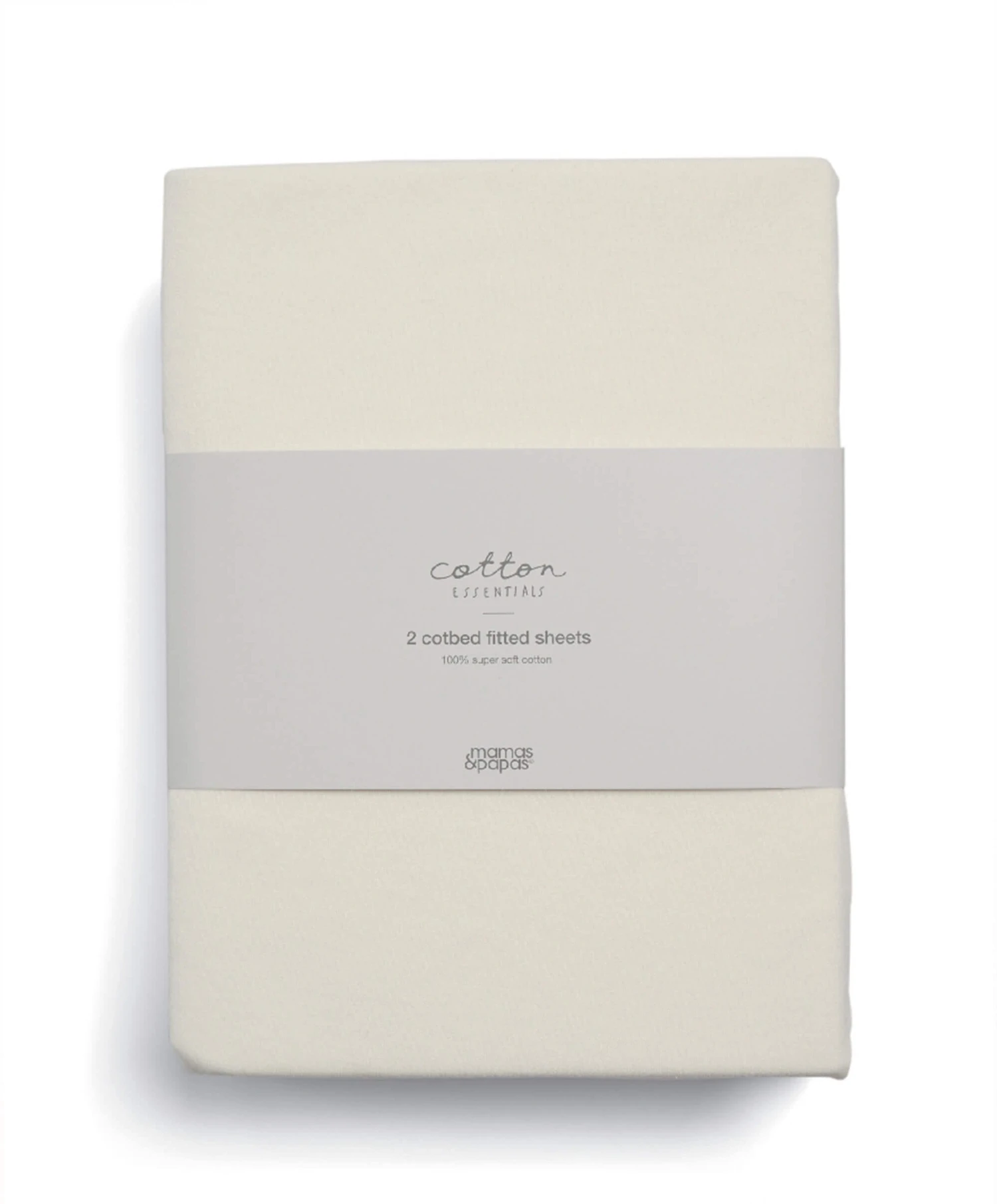 Handy 2-pack of fitted cotbed sheets in neutral cream shade. Crafted from supersoft cotton that’s gentle on baby’s sensitive skin, these sheets are also durable and machine washable, so will last for years of comfy nights’ sleep.