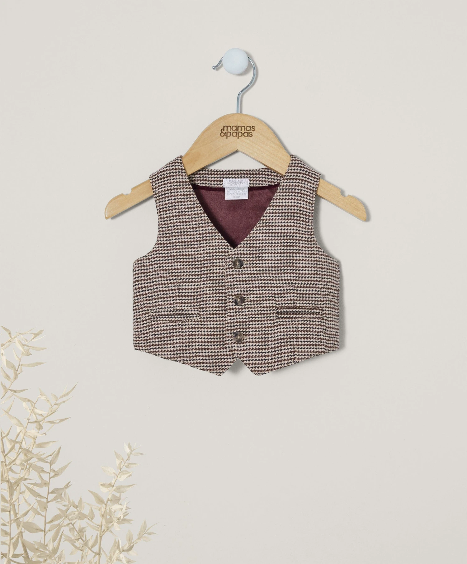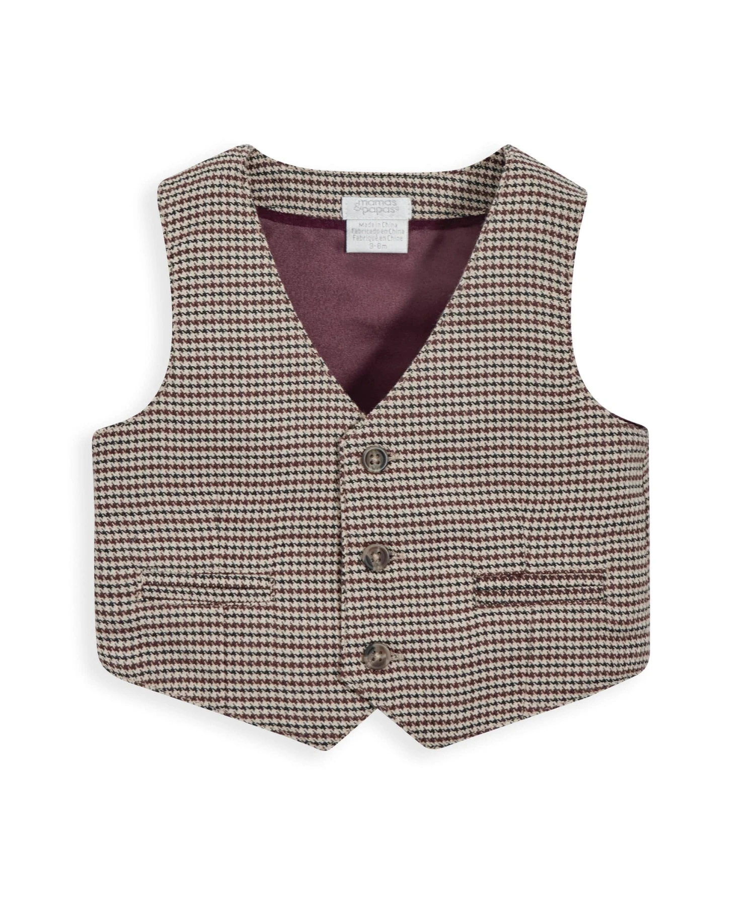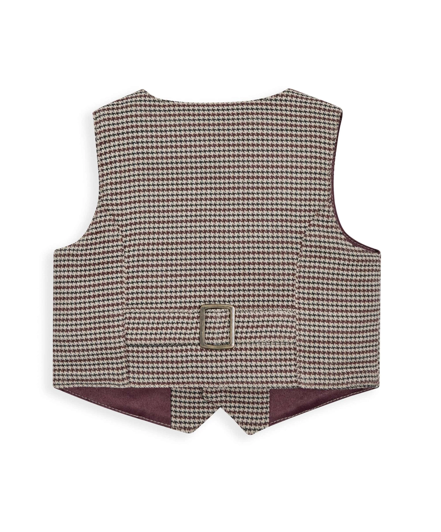 Your little ones will be looking dapper in this dogtooth pattern waistcoat. The brown dogtooth design is contrasted against the maroon silk lining giving it that premium touch for special occasions.