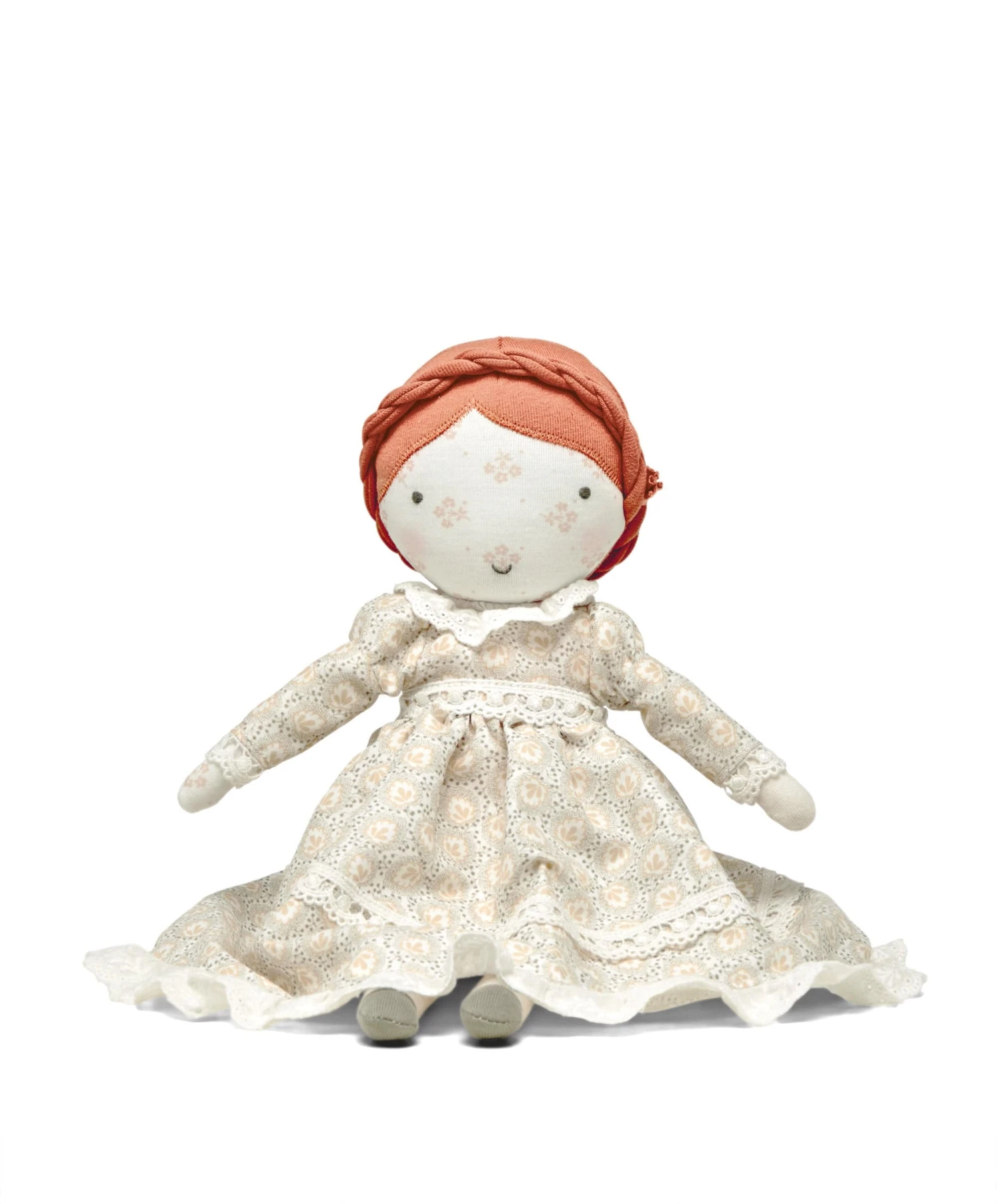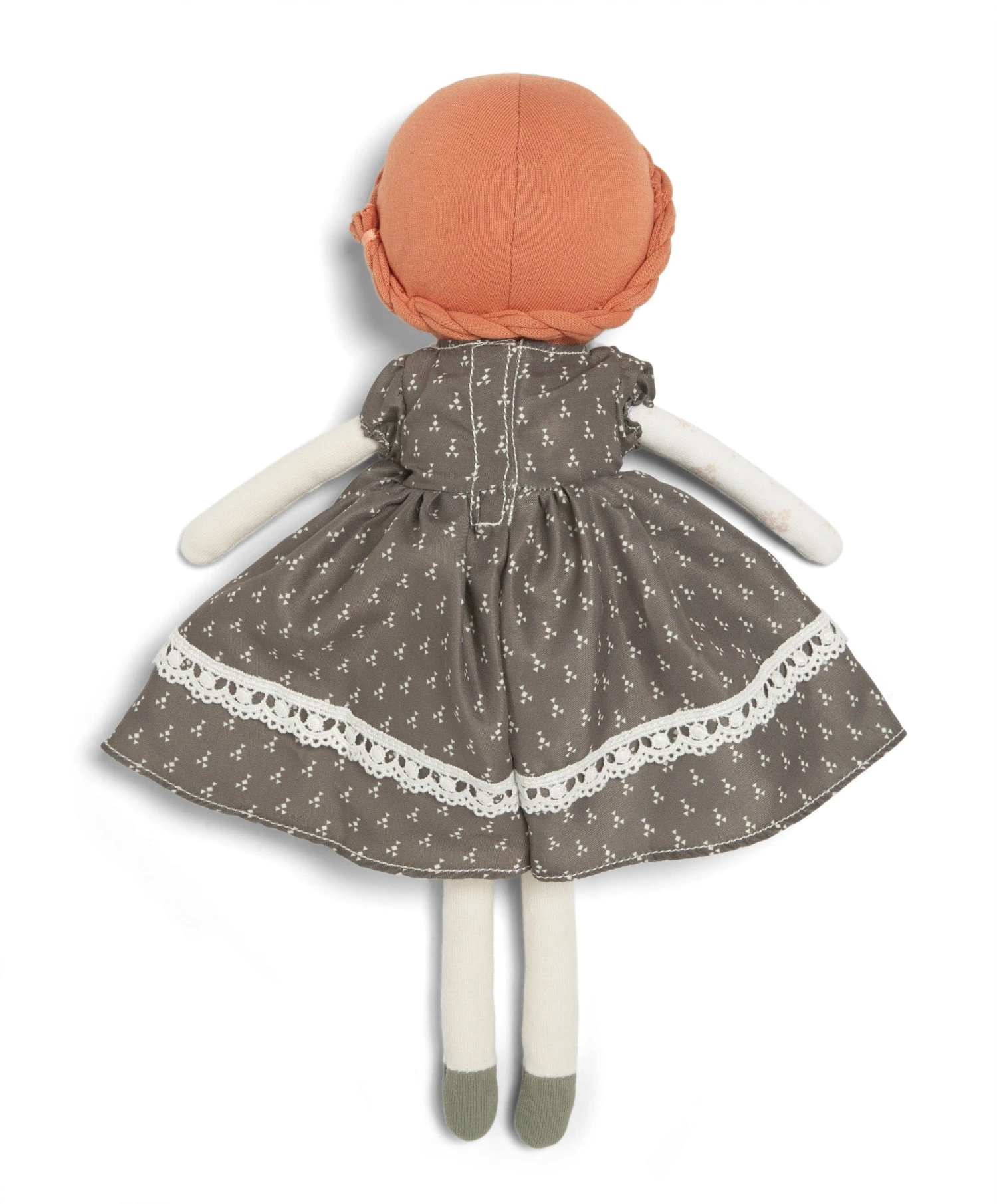 Inclusive and imaginative, each ‘dress up’ doll is unique and special in its own right, with its own personality and outfit. Red -haired Poppy is created from super soft jersey and wears a striking green dress featuring Laura Ashley’s heritage ‘Calcot’ print, a soft palette of muted tones, and comes with an additional dress, a soft mocha-shaded dress in Laura Ashley’s heritage ‘Nutmeg’ print, allowing little ones to swap her outfit as they please. Spare dresses can be stored in Poppy’s ‘Laura Ashley’ branded bag, for a truly fun play experience. All dresses feature velcro openings, for easy changing, and are similar to Mamas and Papas Clothing, with matching lace broderie trims and puff sleeves. Each doll dress also co-ordinates with an item from our clothing range, so little ones can dress their favourite doll to match their own wardrobe. A truly special gift that will delight for years.