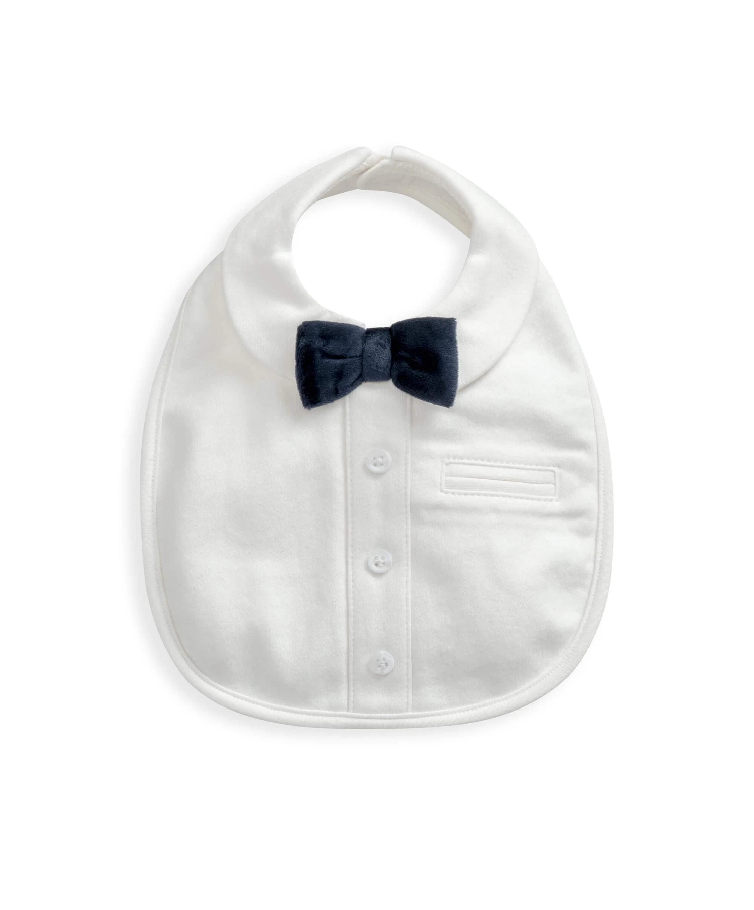 Get the look of a shirt in a bib. Includes 3D bowtie detail, pocket and collar stitch detail. Velcro fastening for easy adjusting.