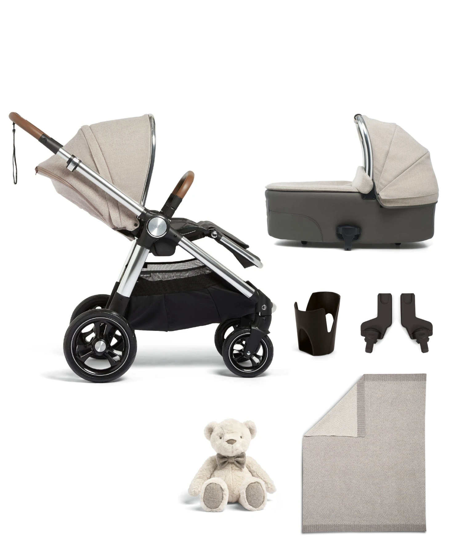 Our 6-piece pushchair bundle is perfect for strolls with your little one. It includes our award-winning all-terrain Ocarro pushchair and carrycot, an Ocarro heritage bear and baby blanket, a handy cup holder, and car seat adaptors that’ll help you go from pushchair to car without a fuss.