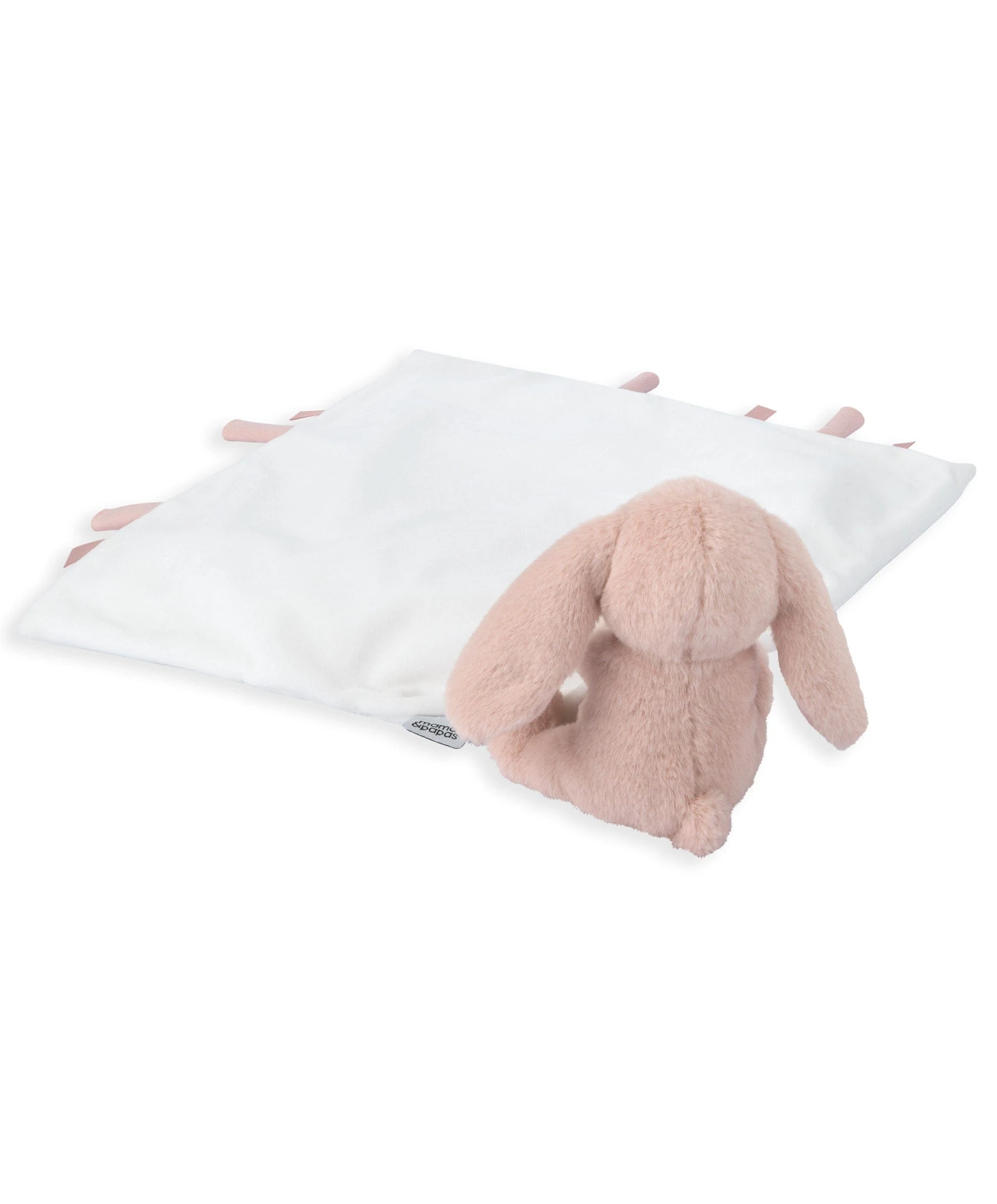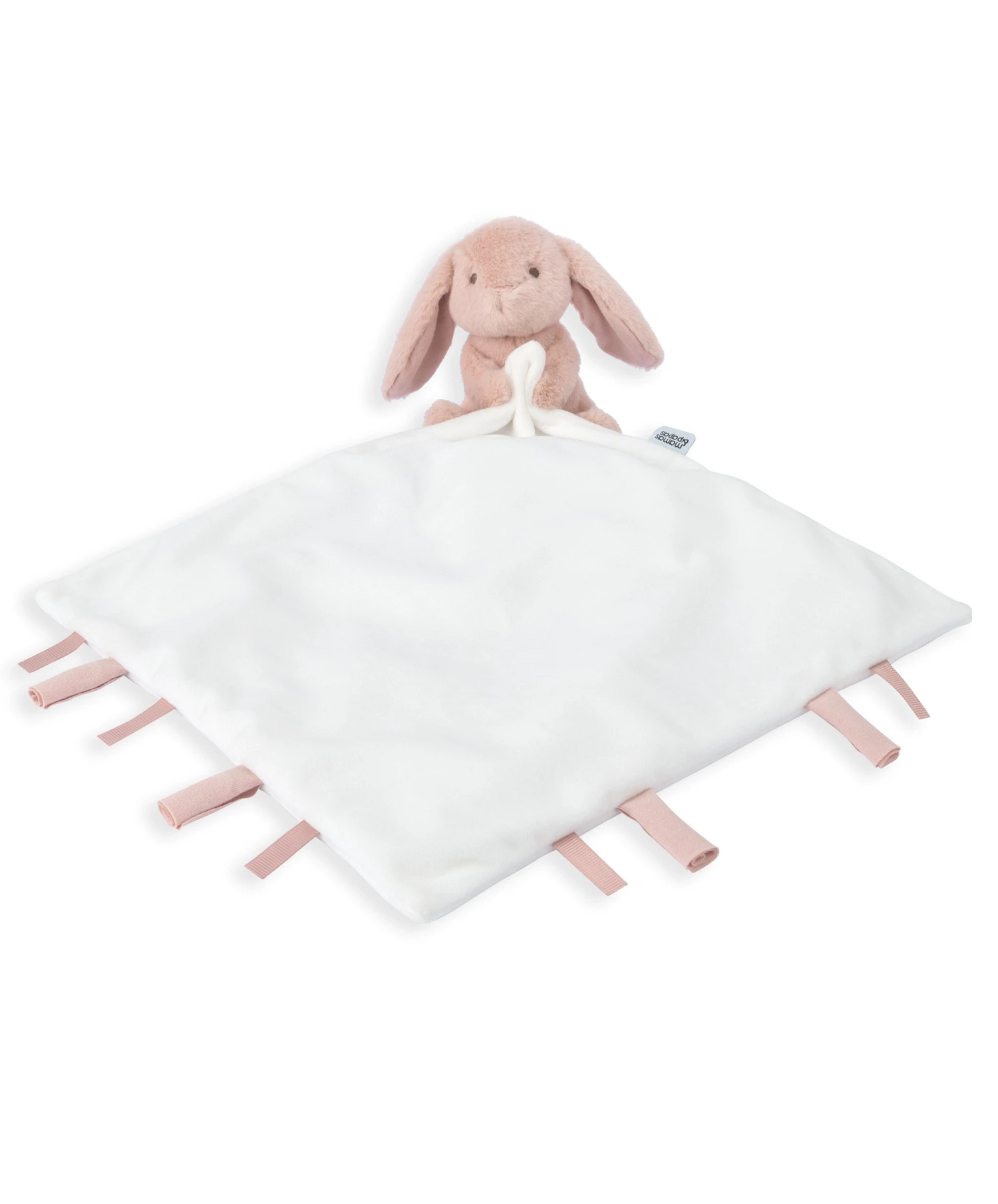 Our pink bunny comforter will be by their side from day one. Crafted from super-soft faux fur, this little bunny is holding onto a soft comfort blanket, with jersey cotton and ribbon detailing around the edge.