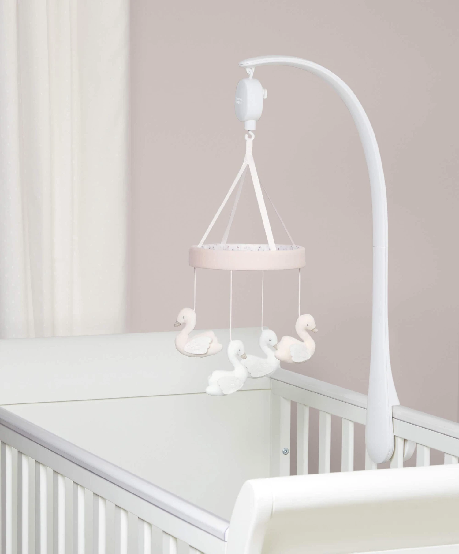 Finished with soft cotton swans sheep and a lovely pink print, it’ll look the part with the rest of our Welcome to the World floral interiors. And thanks to the gentle, soothing wind up music, your baby can stay calm and relaxed.