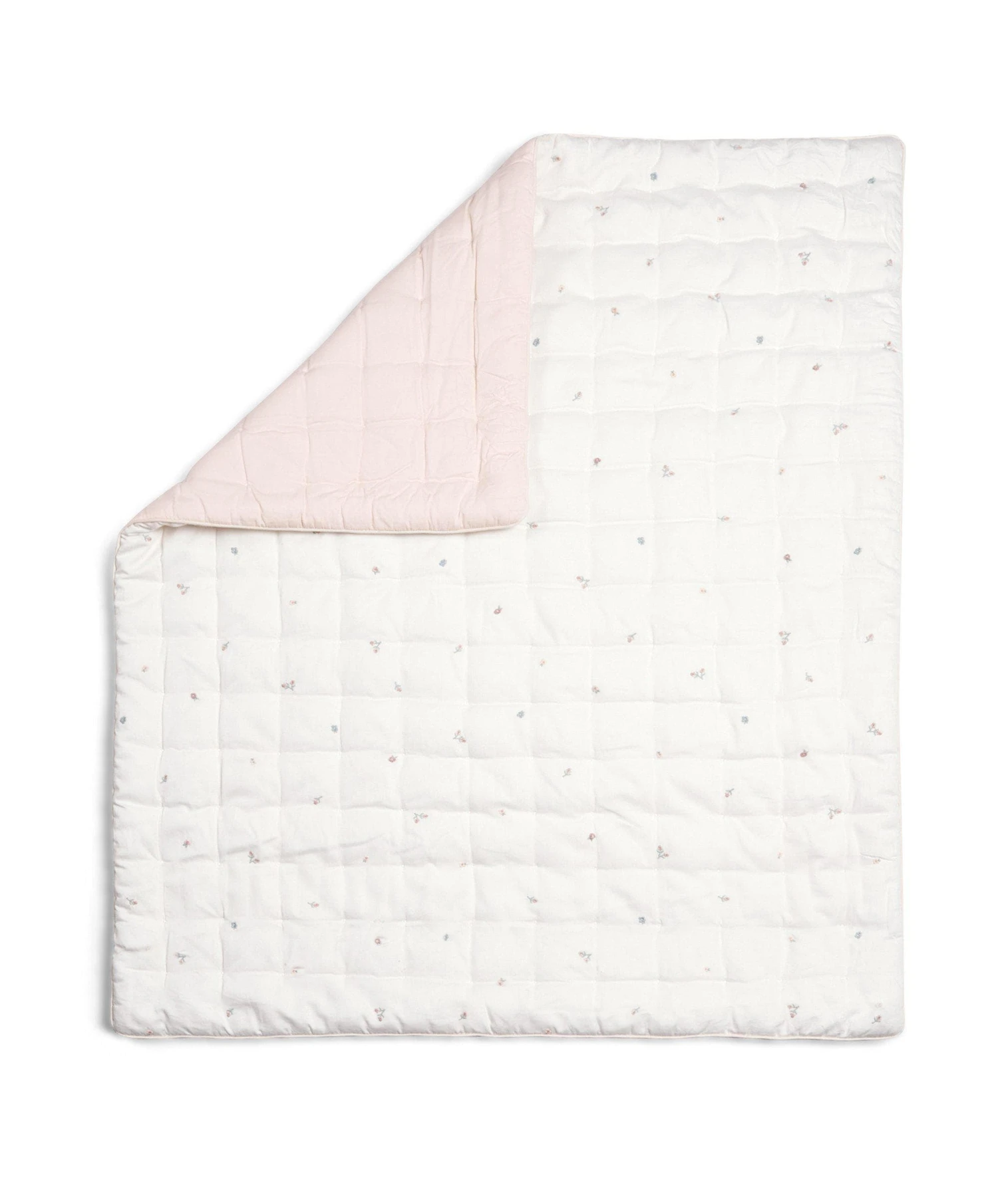 This lovely 4 tog quilt will keep your little one toasty when the temperature drops below 18°c. With a lovely vintage-style ditsy print, it’ll look great with the rest of our Welcome to the World floral interiors range. And thanks to the soft cotton, it’ll feel super-snug for baby.
