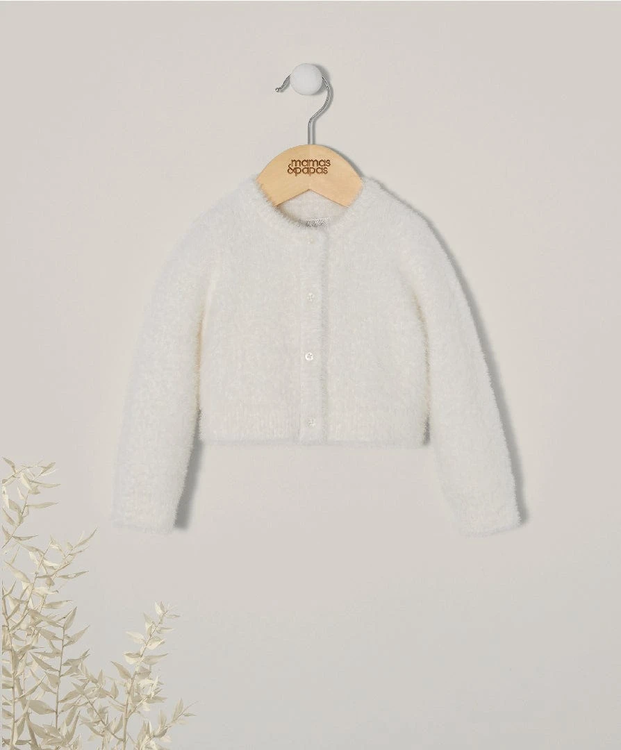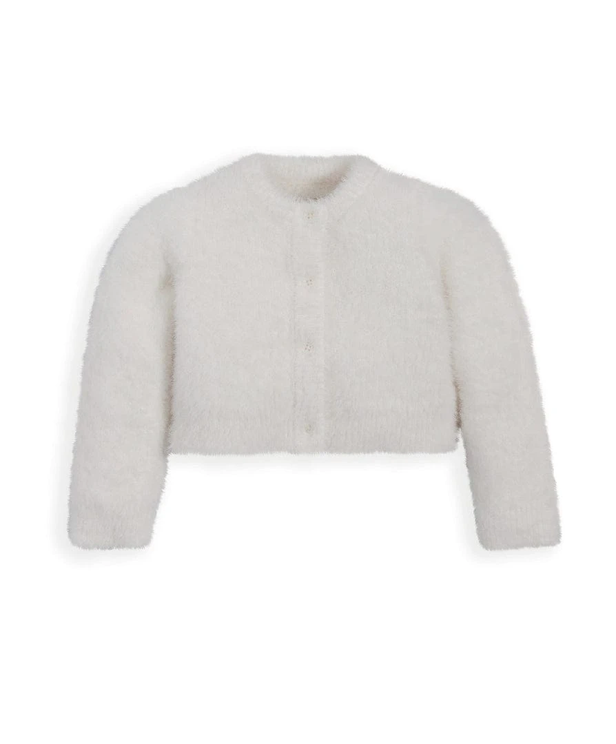 This ultra-fluffy button-down cardigan in stylish winter white is ideal for layering over a party dress, pairing with a glamorous tutu skirt or to dress up a pair of leggings. Cosy, snug and super-soft it is the perfect stylish addition to your little one’s winter wardrobe.
