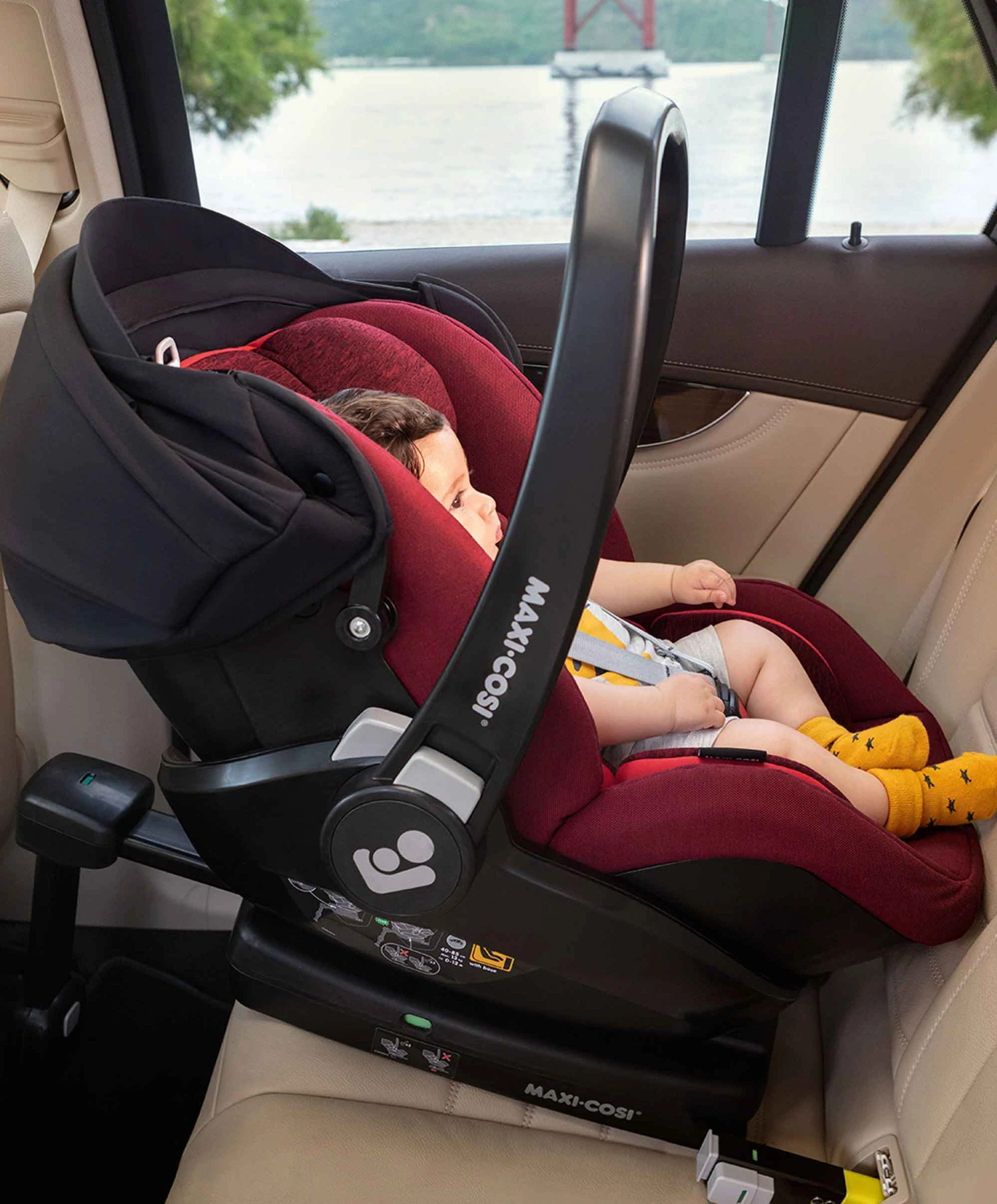 - Easy one-hand release from Maxi-Cosi and Quinny strollers thanks to the memory release buttons