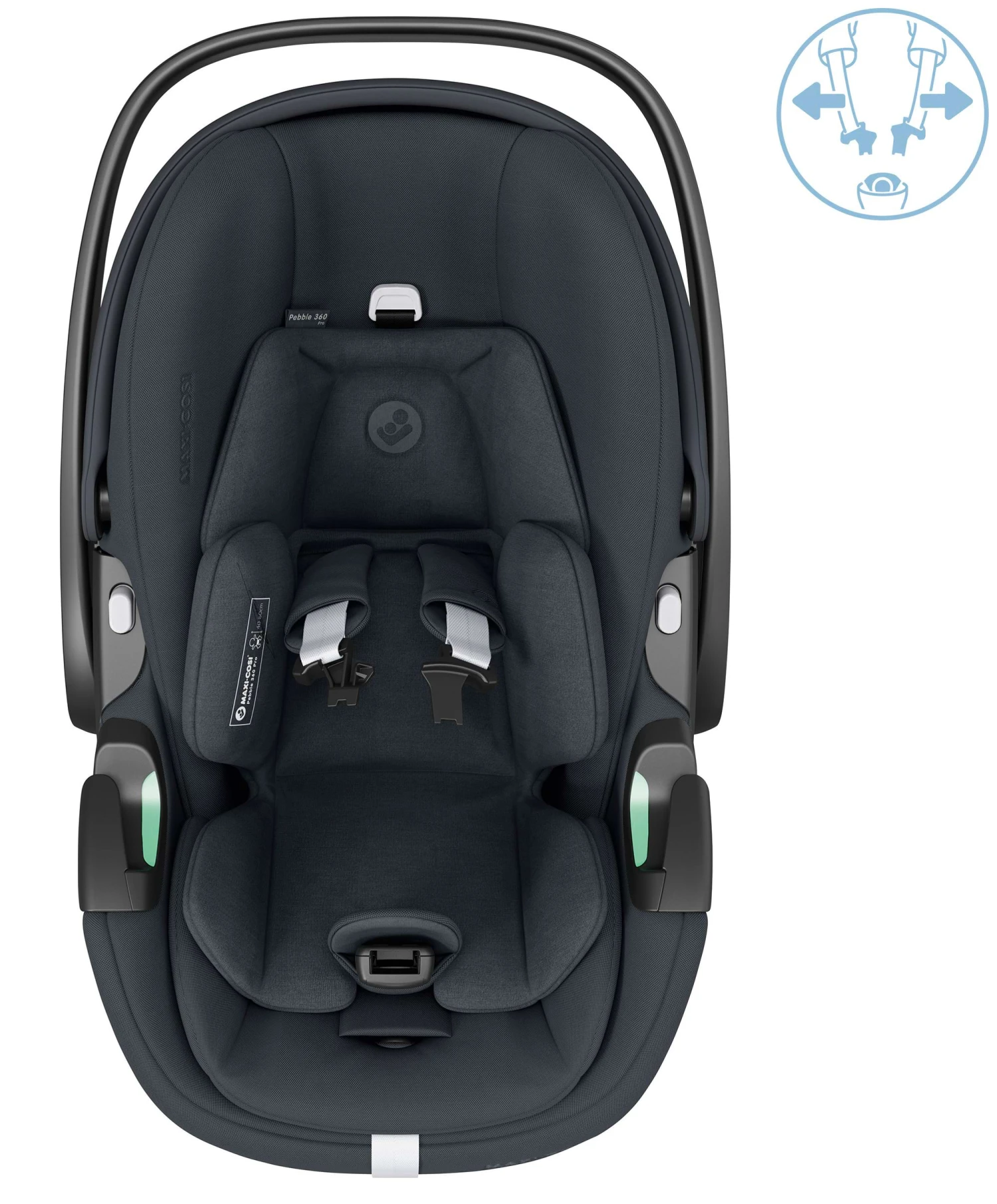 Pebble 360 Pro delivers maximum sleep comfort for your baby, from birth to 15 months. The seat features three recline positions (including a superior full lie-flat position) which can be used in the car and when attached on a stroller. The lie-flat position offers a more natural sleeping position for babies, as it helps keep their airways open and allows them to breathe more easily. When used with the rotating FamilyFix 360 Pro slide out base (sold separately), you can effortlessly rotate and slide your child toward you. The easy-in harness adds even more convenience, allowing you to fasten your baby in with minimum fuss. On the road, Maxi-Cosi’s integrated G-CELL Side Impact Protection provides superior safety.