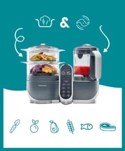 Babymoov Nutribaby+ XL 6-in-1 Baby Food Processor – Blue & Rose Gold