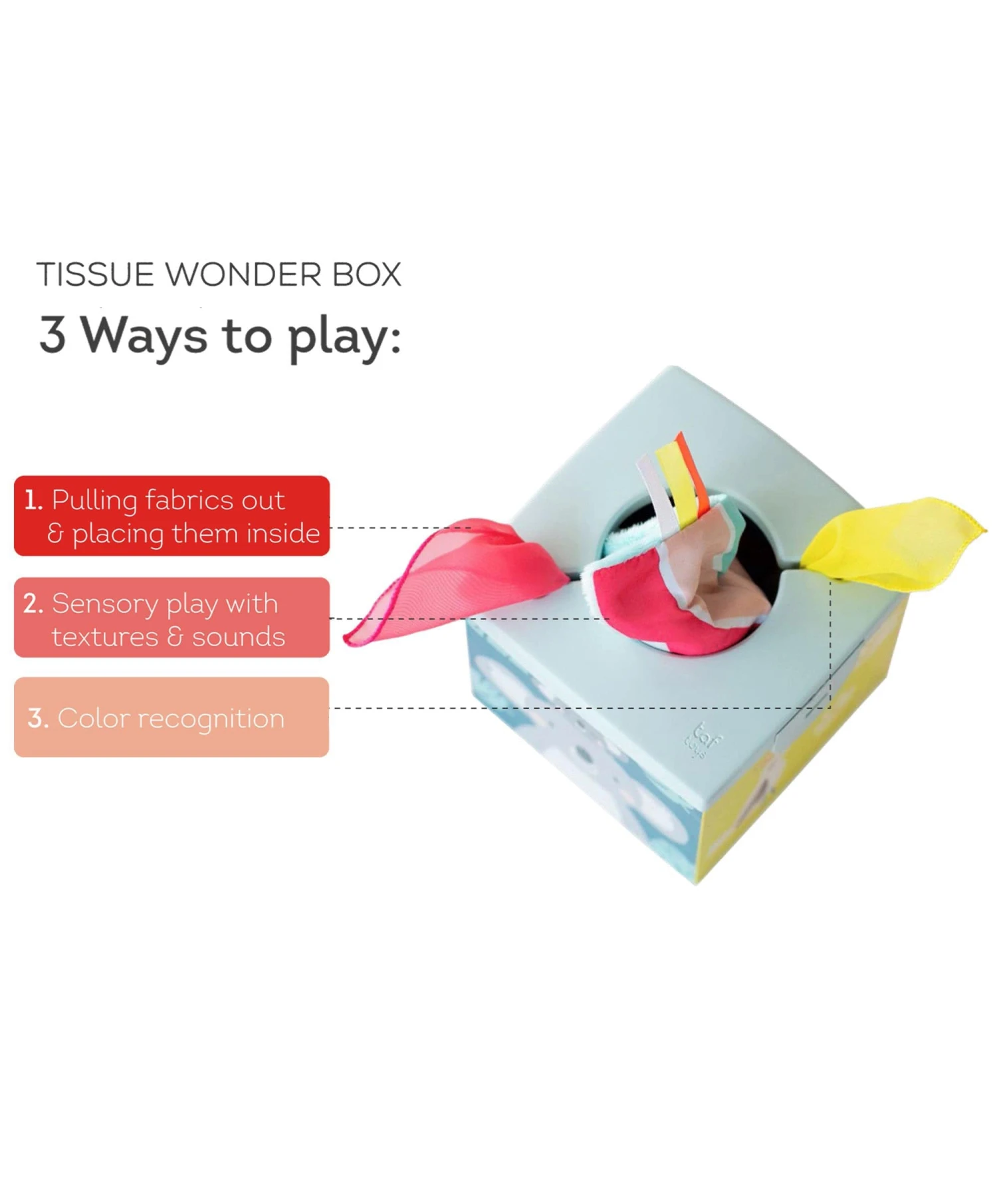 Introducing the innovative Wonder Tissue Box from Taf Toys, designed to engage little minds and little hands from 9 months of age.