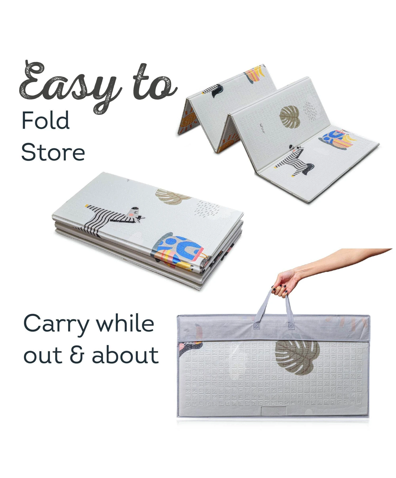 - Extra-large (200cm x 150cm) thickly cushioned playmat that folds for easy storage.