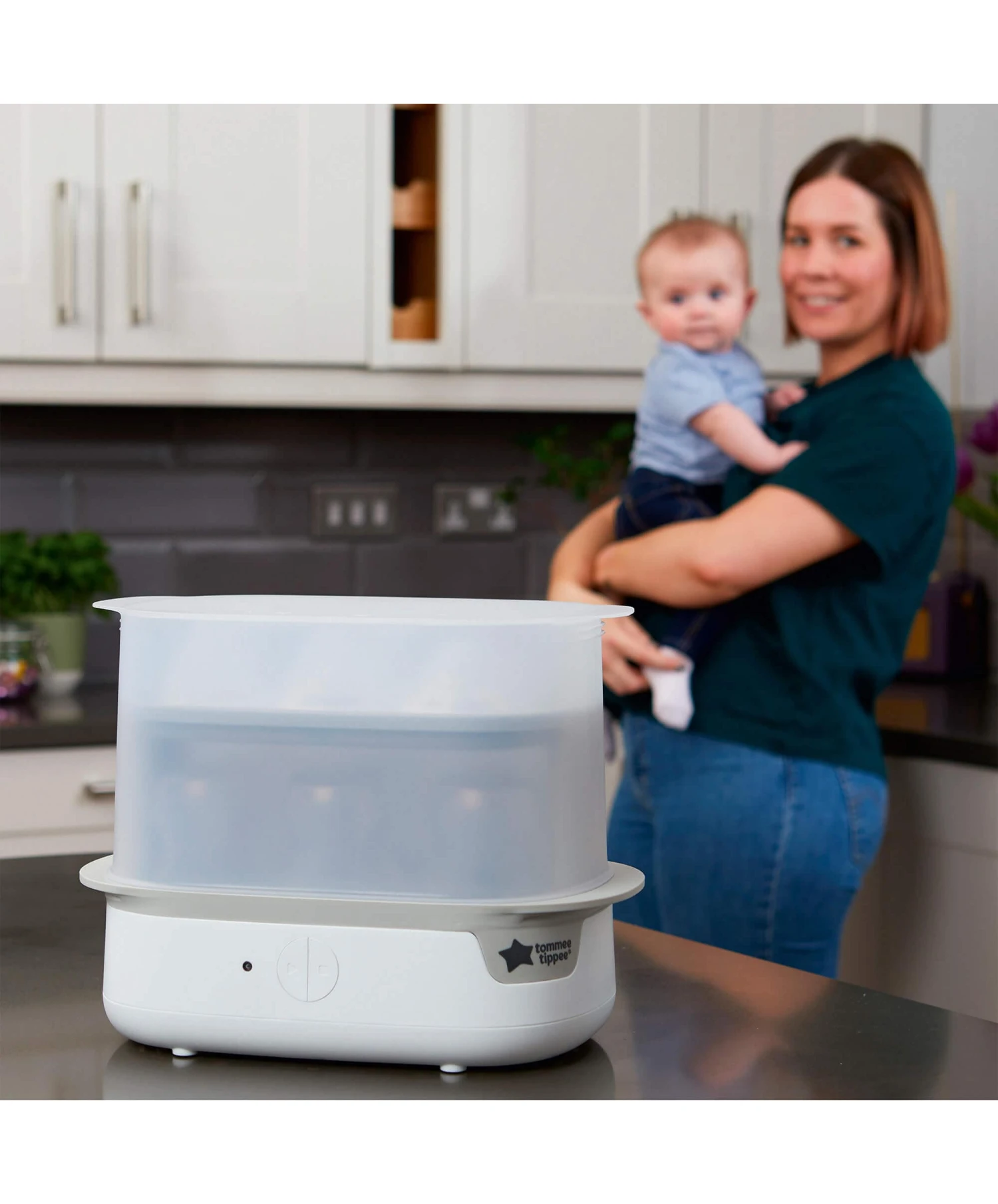 Time efficient: Thanks to a quick sterilisation cycle of just 5 minutes, Tommee Tippee’s Electric Steam Steriliser ensures you have up to 6 clean, sterile bottles in time for baby’s next feed.