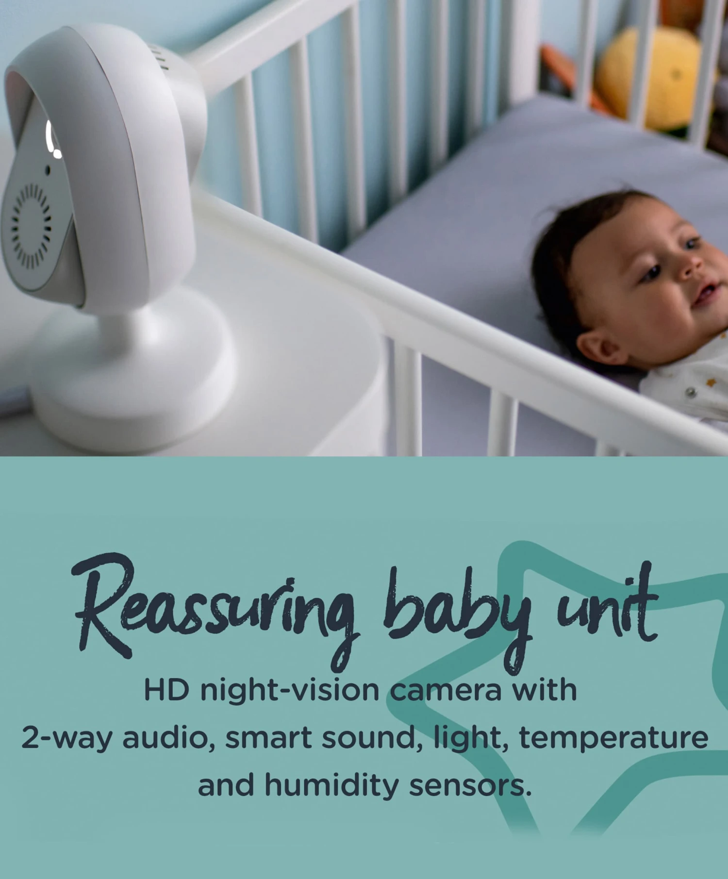 Tommee Tippee Dreamsense App-Enabled Smart Baby Monitor, HD Remote Tilt and Pan Night-Vision Camera, 2-Way Audio, Intelligent Parent Pod for Customisable Alerts and Sleep Tracking
