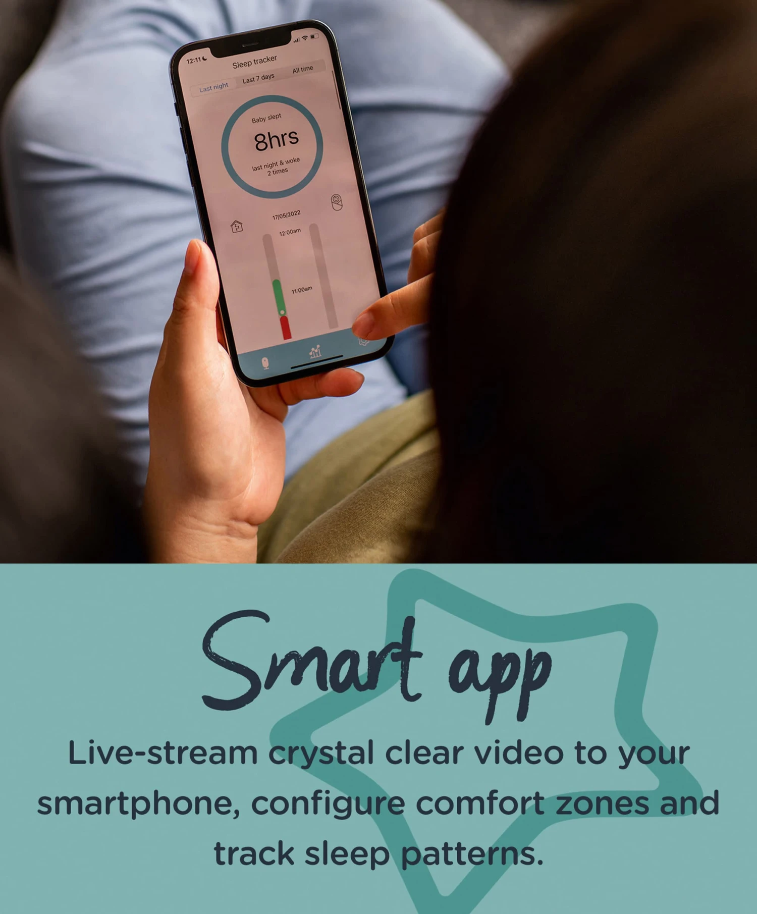 Smart app enables you to watch baby from anywhere, define custom comfort zone levels and track baby’s sleep patterns