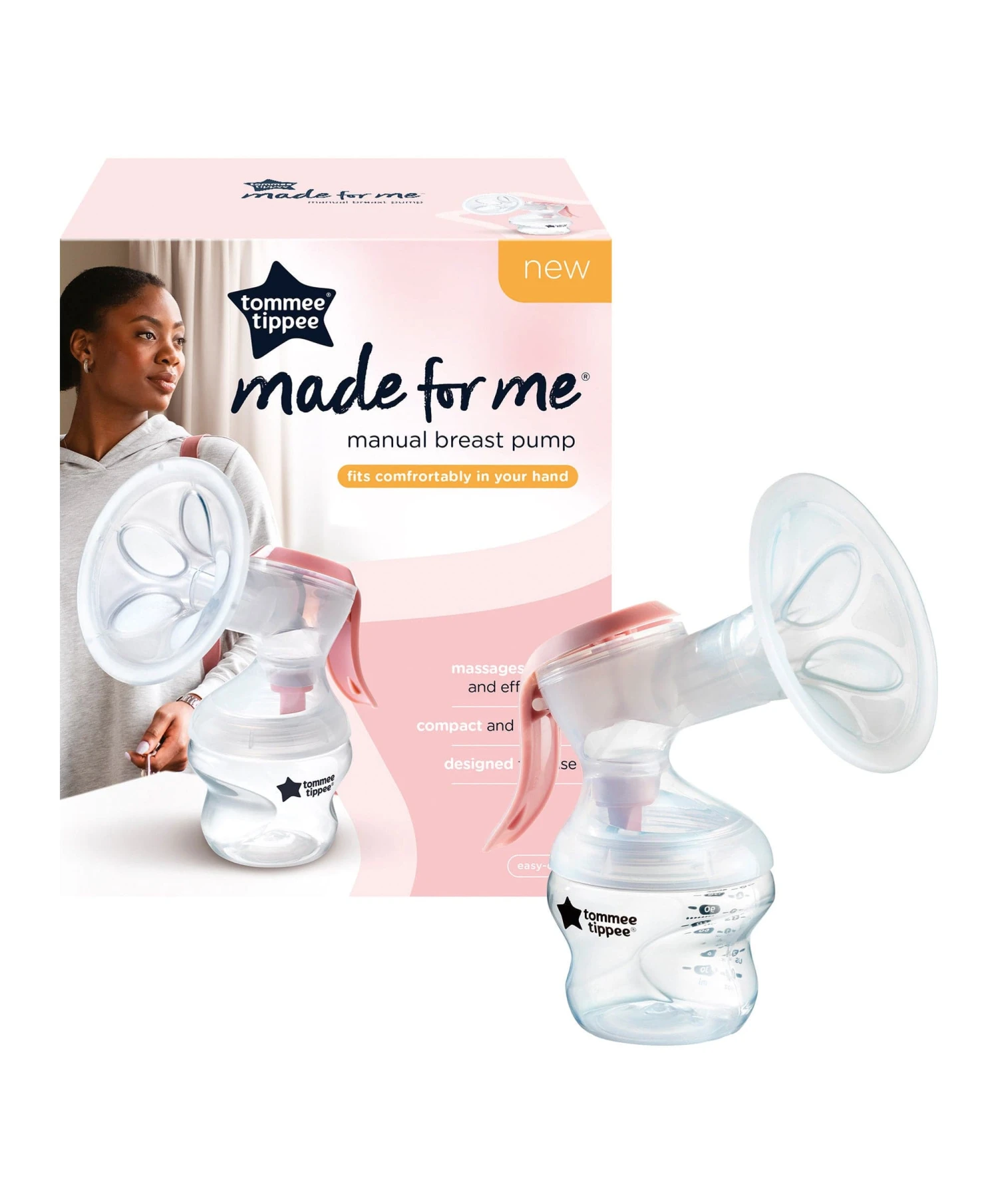 The manual breast pump even comes with a 150ml Closer to Nature baby bottle with measurement markers so you can keep track of how much you’re expressing. It also connects to all sizes of our Closer to Nature and Advanced Anti Colic baby bottles*, making it easily adaptable to your unique breast pumping experience. Free from cords and tubes, this Tommee Tippee Manual Breast Pump is the ultimate travel companion and is compact enough to fit in your handbag or changing bag. It’s extremely lightweight so it doesn’t weigh you down and has a discreet design that allows for quiet pumping at work, the café or at home while baby sleeps. The horn has a hygienic one-piece design that’s easy to assemble and disassemble, so you can get on with expressing quickly and easily. This also makes cleaning the pump, whether in hot soapy water, the dishwasher or steriliser, simple and stress-free. The innovative built-in closed system means all your precious breastmilk only goes into the bottle, so you don’t waste a single drop. Made from completely BPA and BPS-free materials, you can rest-assured that your baby has a super-safe feed. *Excludes glass.