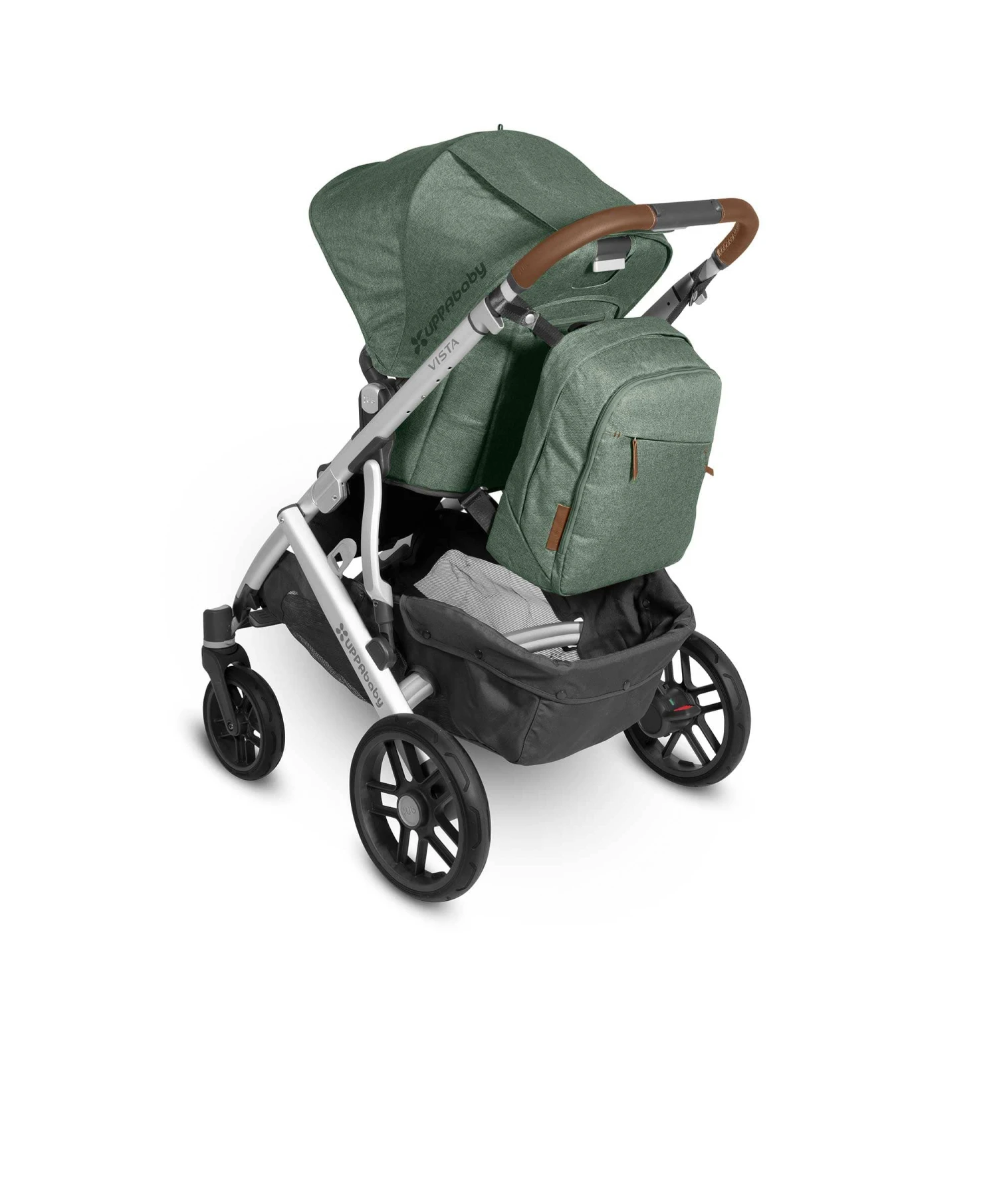 The UPPAbaby Changing Backpack provides a functional yet stylish solution to store baby care necessities and personal items. The premium fabrics and leather detailing coordinates beautifully to the stroller for a custom look.