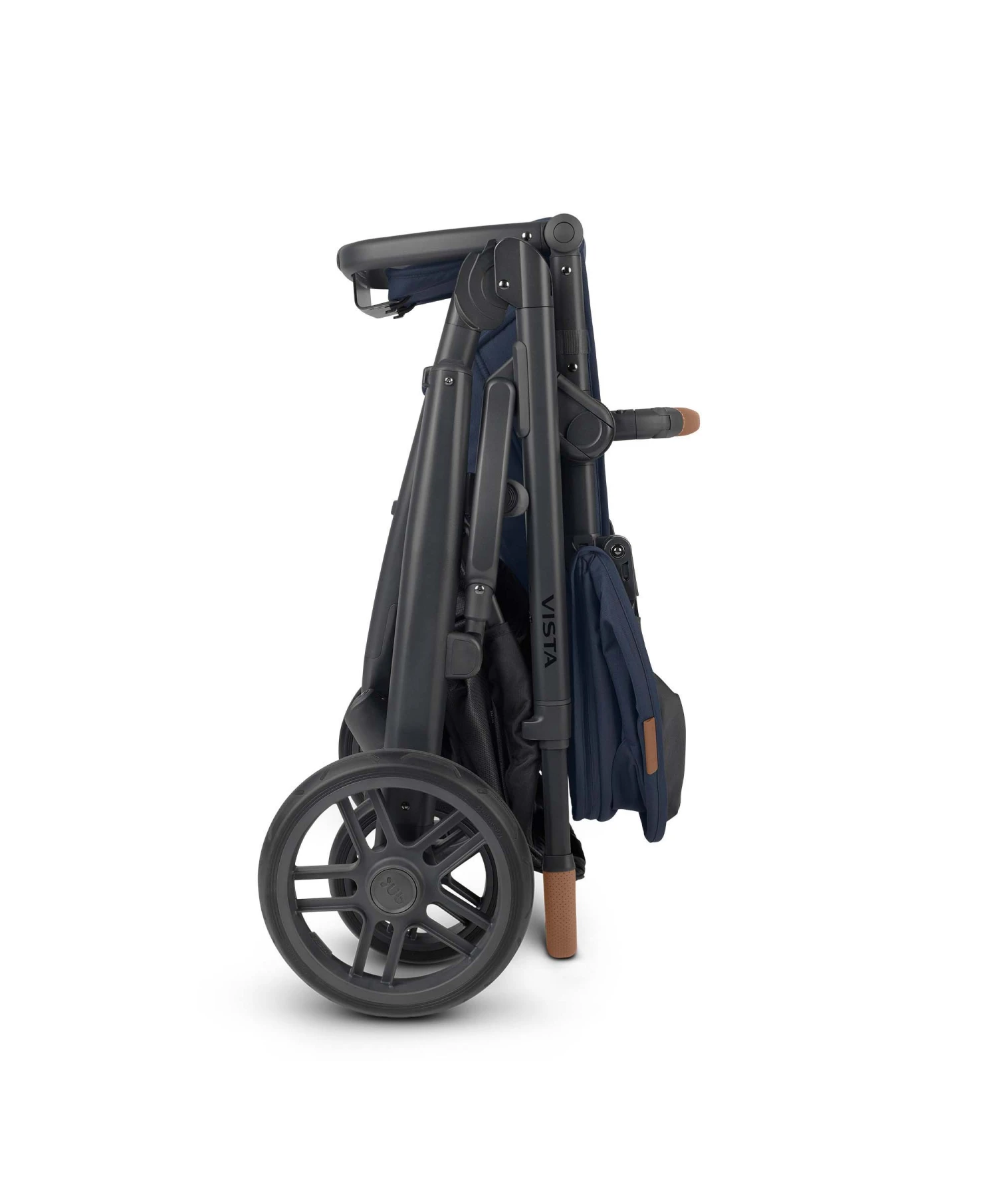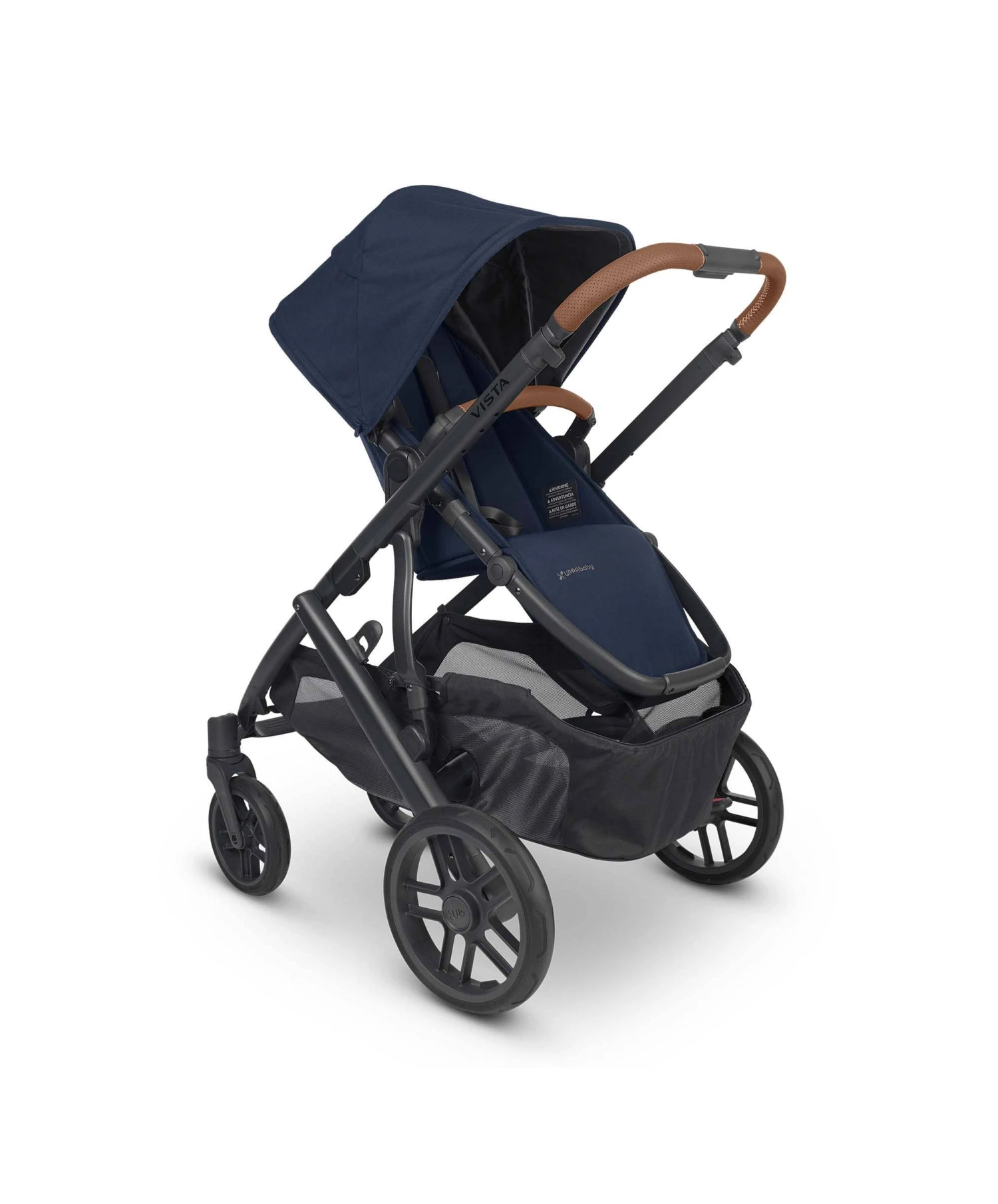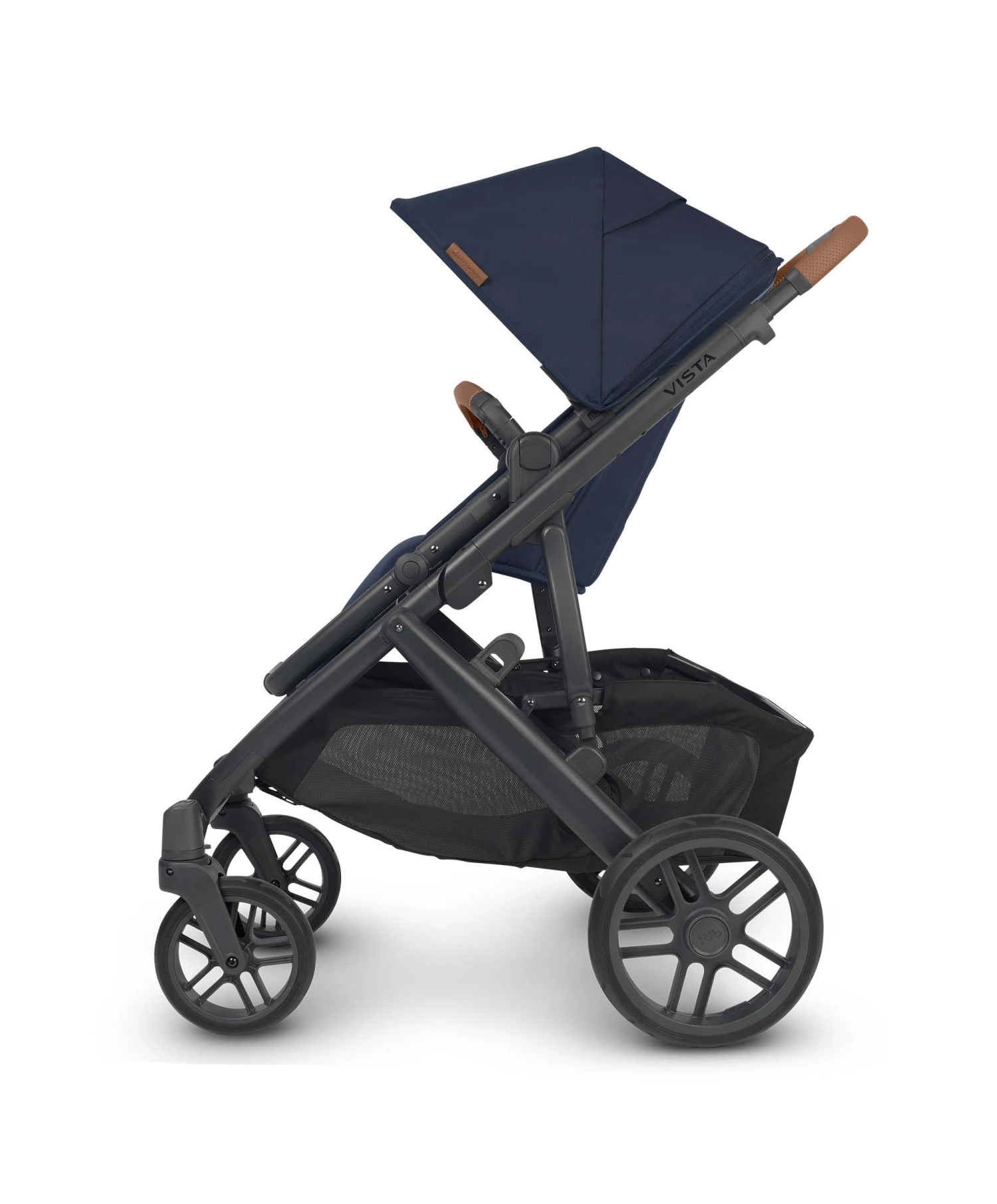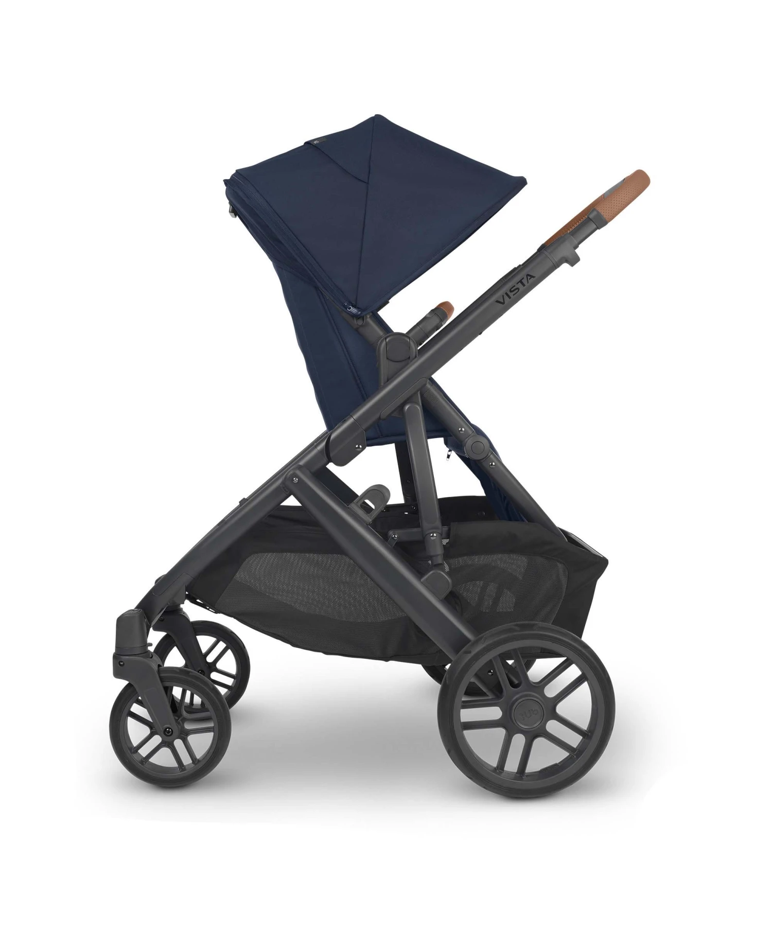 The Uppababy VISTA V2 pushchair with its enhanced performance features and intuitive design allows for multiple configurations, making transporting a second and third child a breeze – all while strolling like a single.