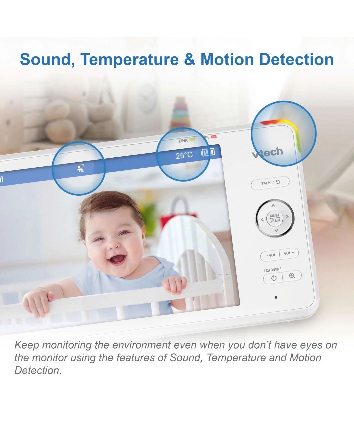 VTech understands the importance of having a secure connection to the people and rooms that matter most. It is because of this that VTech works to create baby monitors for parents and families that provide peace of mind, intuitive operation and state-of-the-art technology