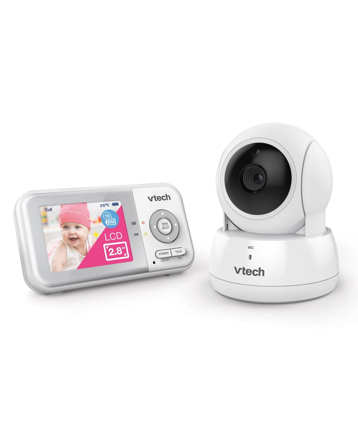- Keep an eye on your little one with a 2.8″ high-resolution colour LCD screen